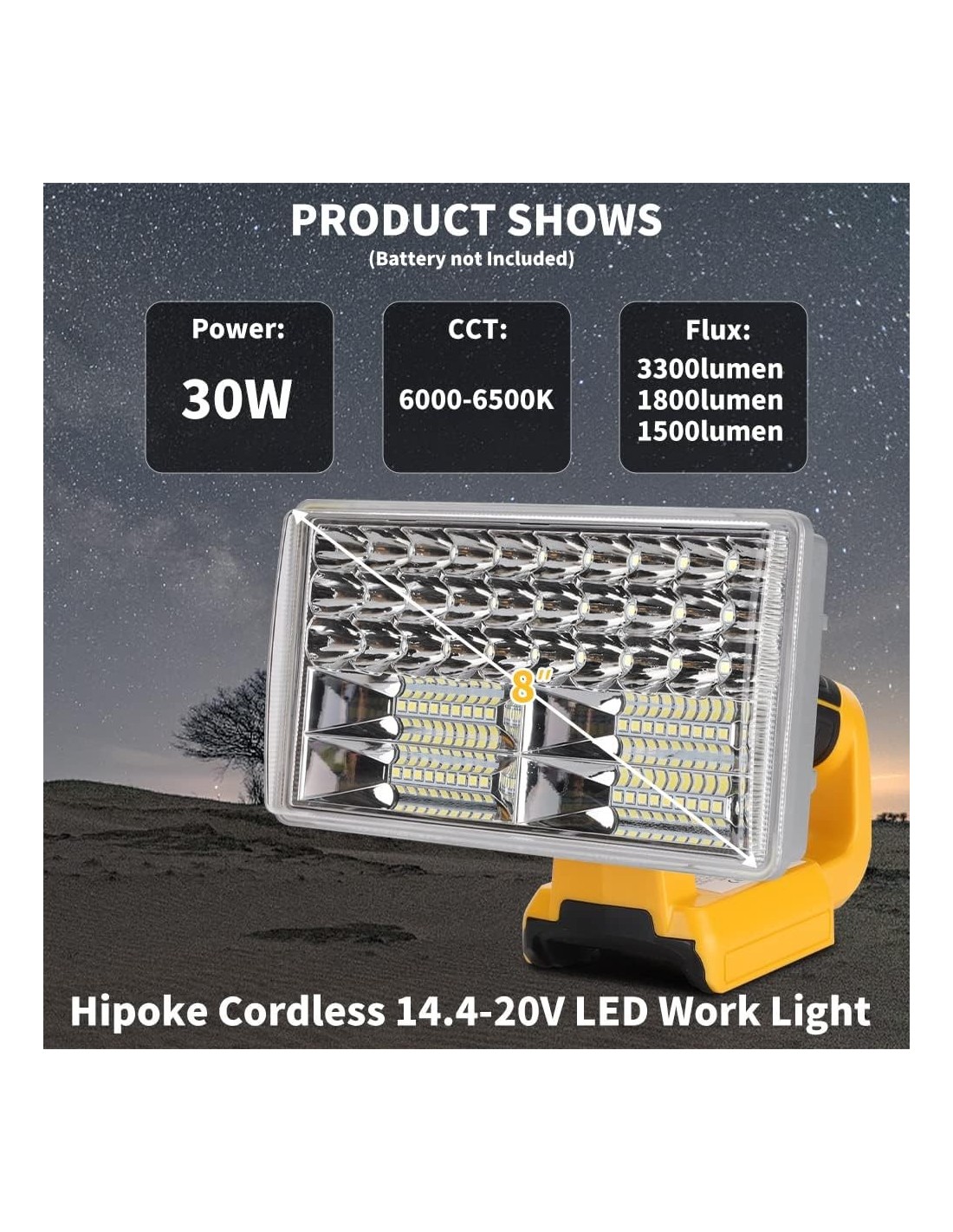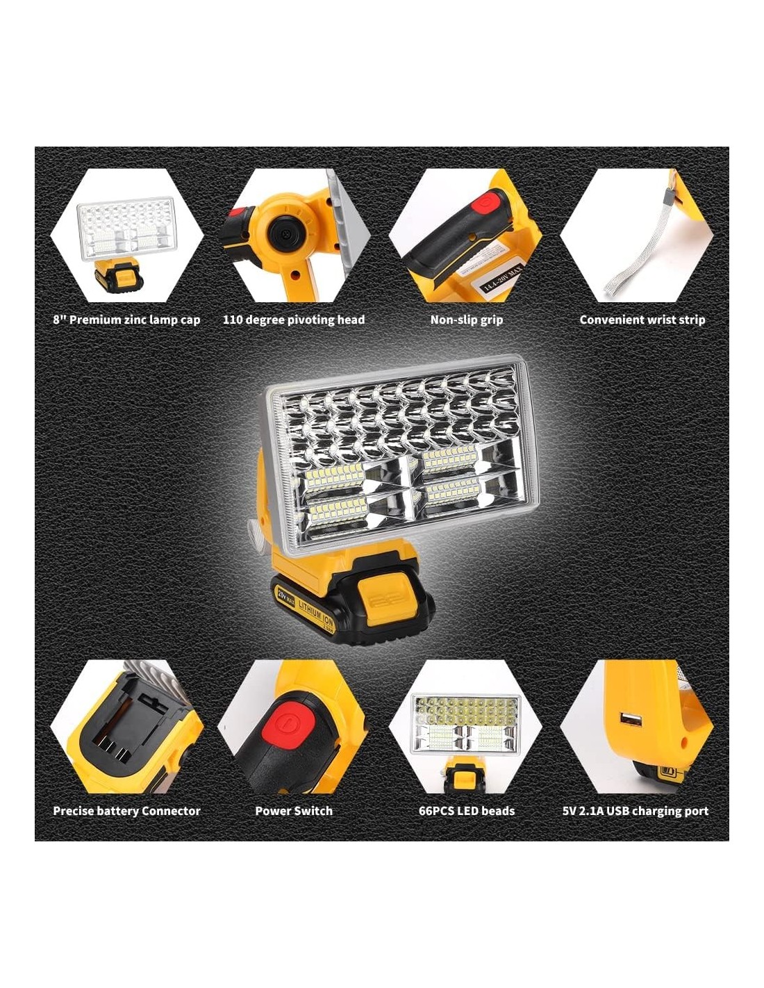 La linterna de mano Cordless Tool de 30 W proporciona un brillo de 3300 lúmenes, equipada con un puerto USB de 5 V 2,1 A, compatible con Dewalt .