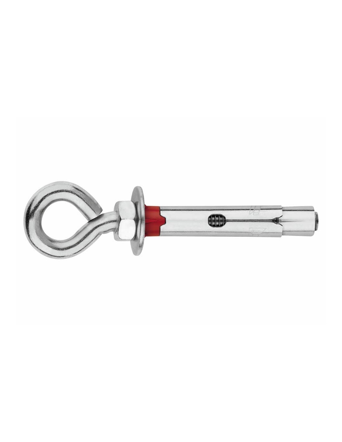 Anclaje antigiro para cargas medias con argolla y principio de funcionamiento por expansión en materiales macizos. Ha sido diseñado y patentado por INDEX para ofrecer anclajes seguros gracias a sus componentes antigiros incorporados en el casquillo, la ca