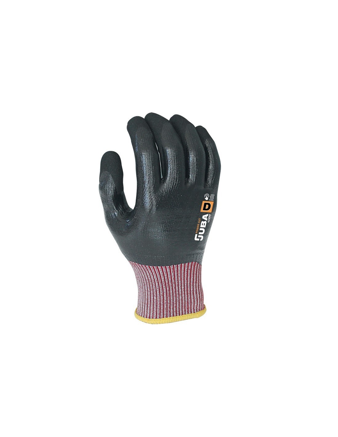 Guante con alta resistencia al corte que incorpora la fibra K-rock, la nueva tecnología de corte de Juba, con doble recubrimiento de nitrilo estanco y nitrilo arenoso.. Características
