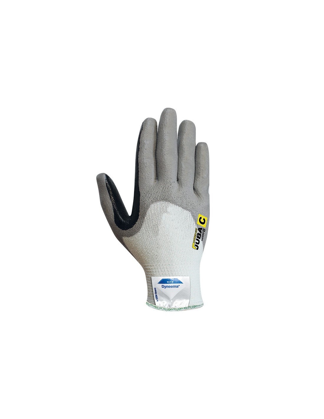 Guante sin costuras de fibra Dyneema® mezclado con fibra de vidrio con recubrimiento de poliuretano en palma y medio dorso con refuerzo entre el pulgar y el índice. Características