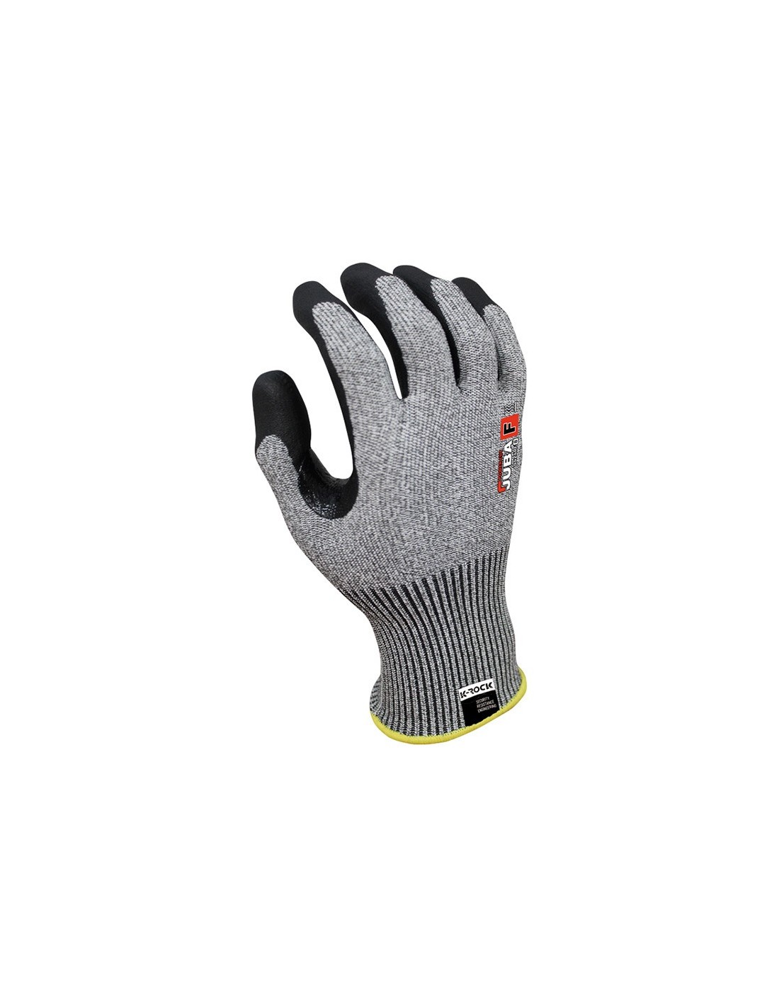 Fibra K-ROCK® sin costuras con recubrimiento de nitrilo foam en palma y refuerzo extra entre el índice y el pulgar.. Características
