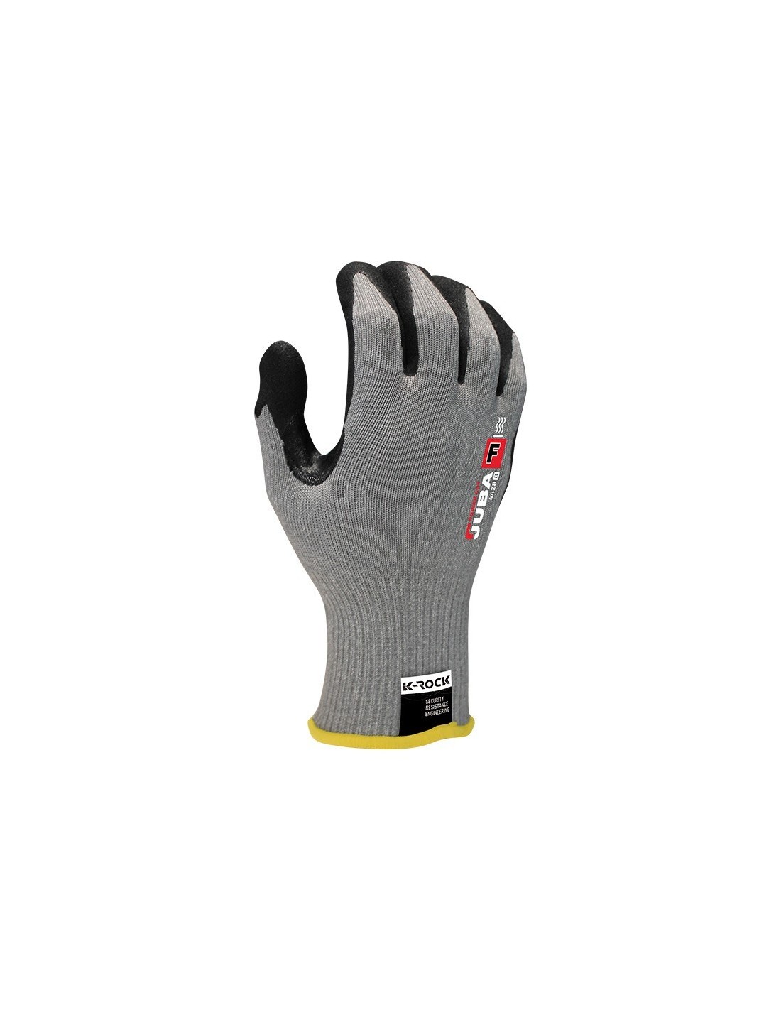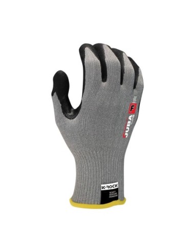 Guantes sin costuras con alta resistencia al corte que incorpora la fibra K-rock, la nueva tecnología de corte de Juba, recubierto de bipolímero, nitrilo con tecnología T-touch® y poliuretano de base acuosa.. Características