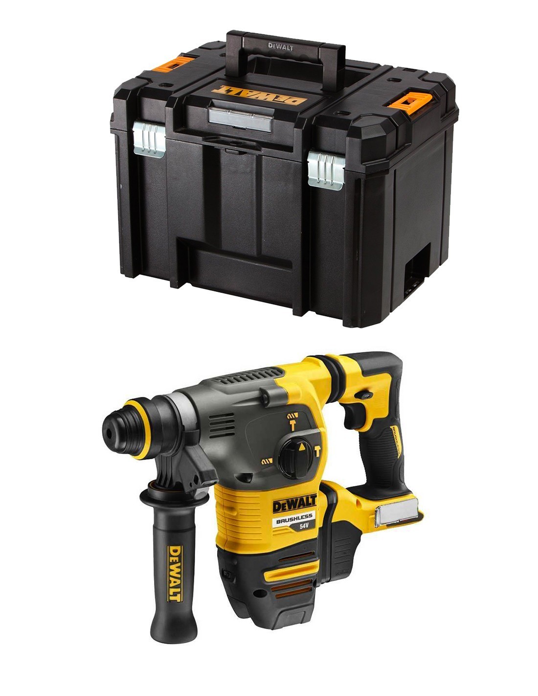 Parada de Rotación para ligeras aplicaciones de cincelado en yeso y azulejos; y Parada de Impacto para taladrar madera, cerámica o metal, Motor: 54V Brushless, Energía de impacto: 3,5 Julios, Velocidad: 1100 r.p.m, Impactos: 4880 i.p.m, Capacidad en hormigón: 30mm, Peso: 3,7 kg.