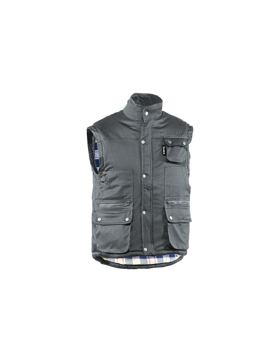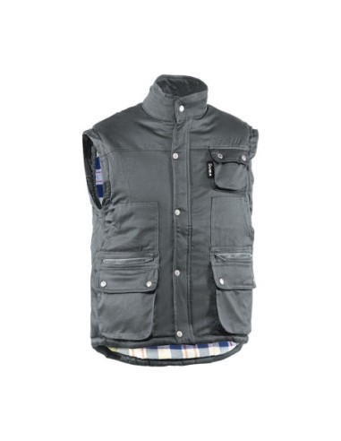 Chaleco multibolsillos acolchado de algodón en color gris. Descripción