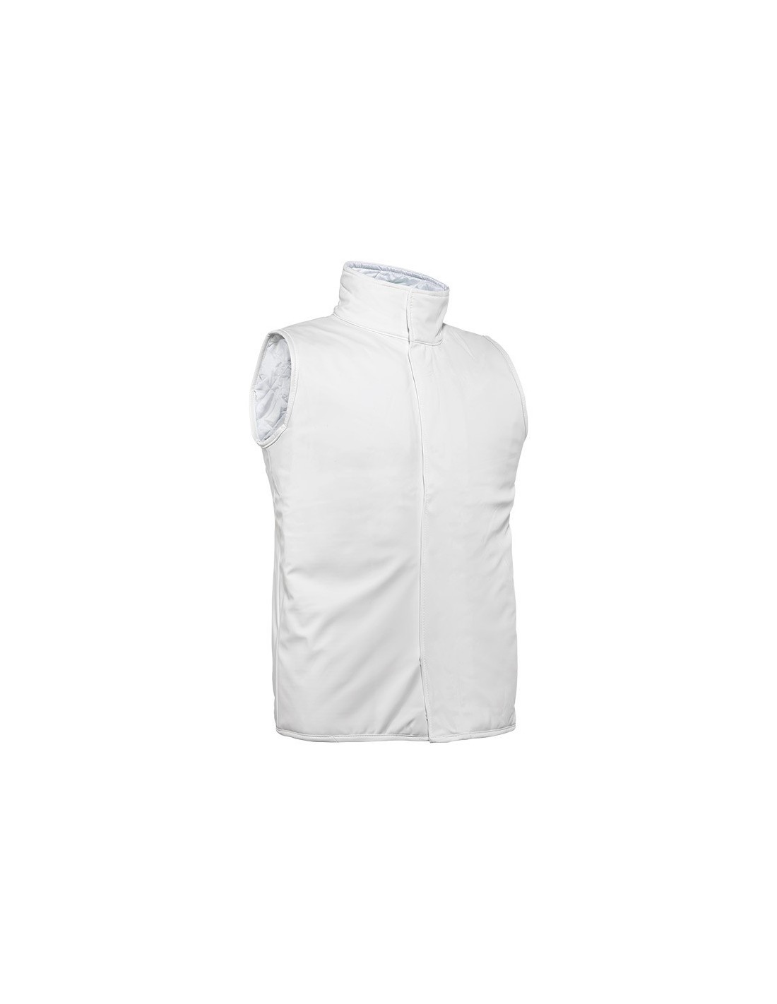 - Chaleco con diseño sin bolsillos exteriores. Costuras termosoldadas. Disponible de un bolsillo interior. Cierre frontal con corchetes.