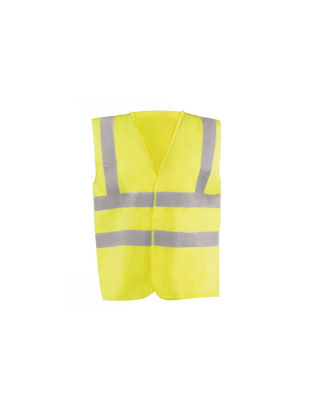 Chaleco básico de alta visibilidad con bandas horizontales y verticales.. Descripción