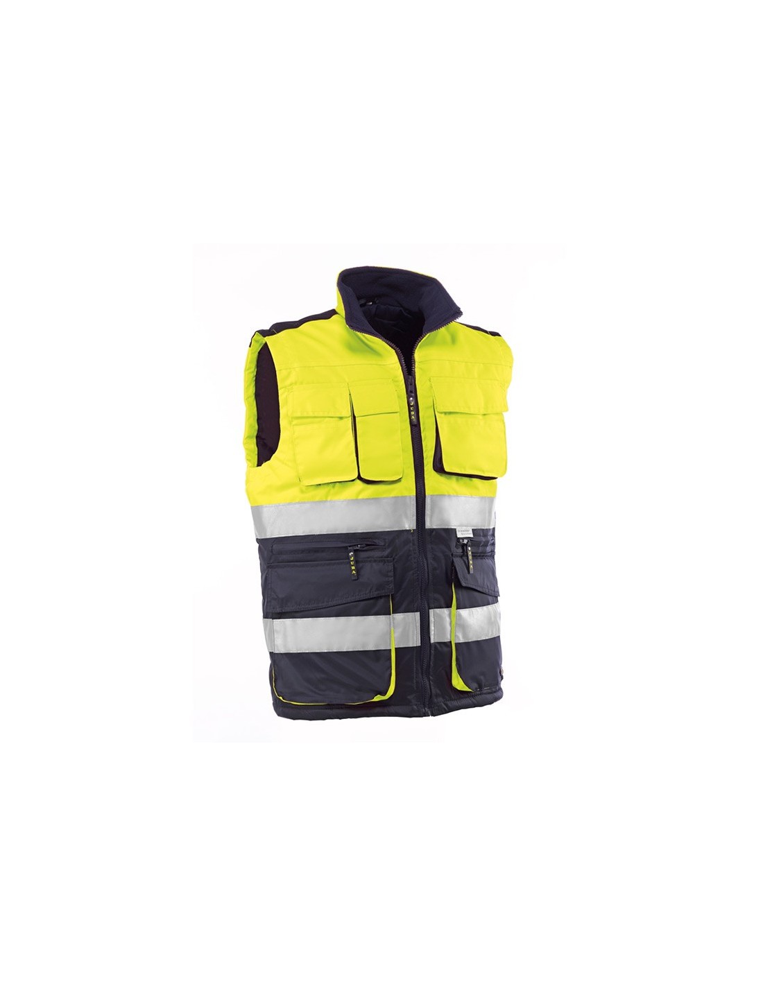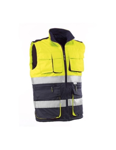 - Bandas reflectantes de 3M® ScotchliteTM. Tres bolsillos superiores con cierre velcro y tapeta y cuatro bolsillos inferiores.