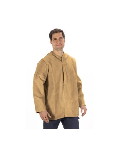 Chaqueta soldador en serraje crupón, cierre frontal con corchetes. Puño de goma elástica.