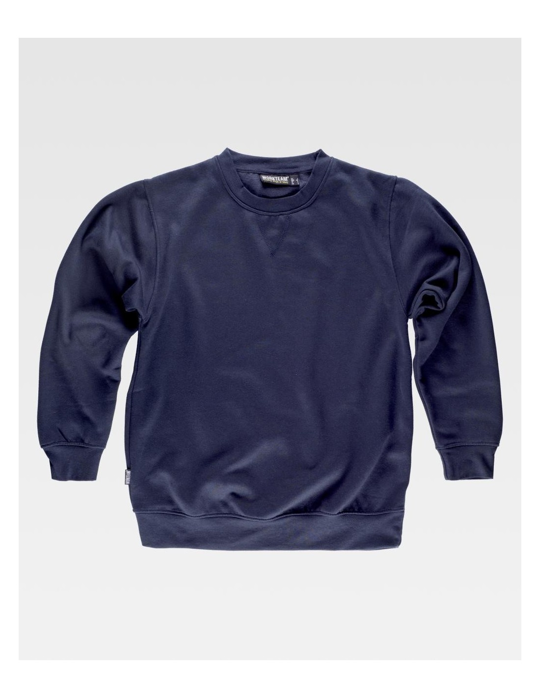Sudadera clásica de cuello redondo con costura a pico de fantasía. Cubrecosturas en el interior del cuello y costuras reforzadas. Suave y cálido acabado interior. Cuello, puños y cintura elásticos en punto canalé.