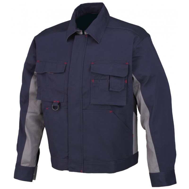Riesgos mínimos. Cazadora con diferentes ajustes en la cintura, red transpirable bajo la axila, sistema para absorber las ondas electromagnéticas del móvil, múltiples bolsillos de diferentes tamaños. Composición: 97% algodón, 3% spandex.