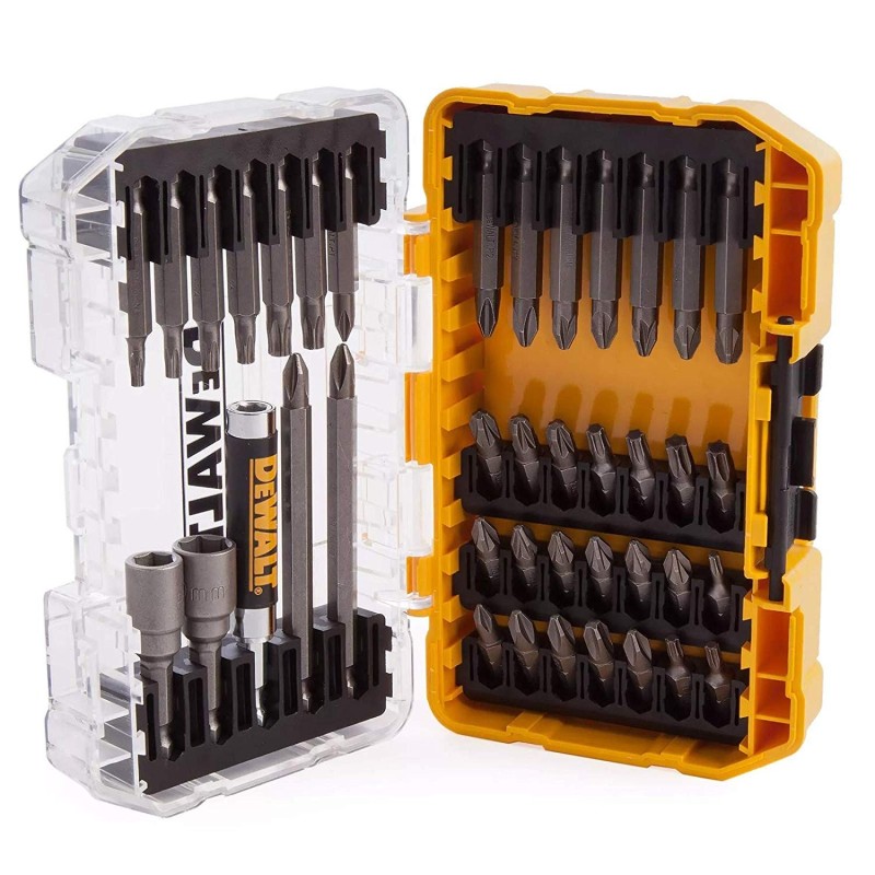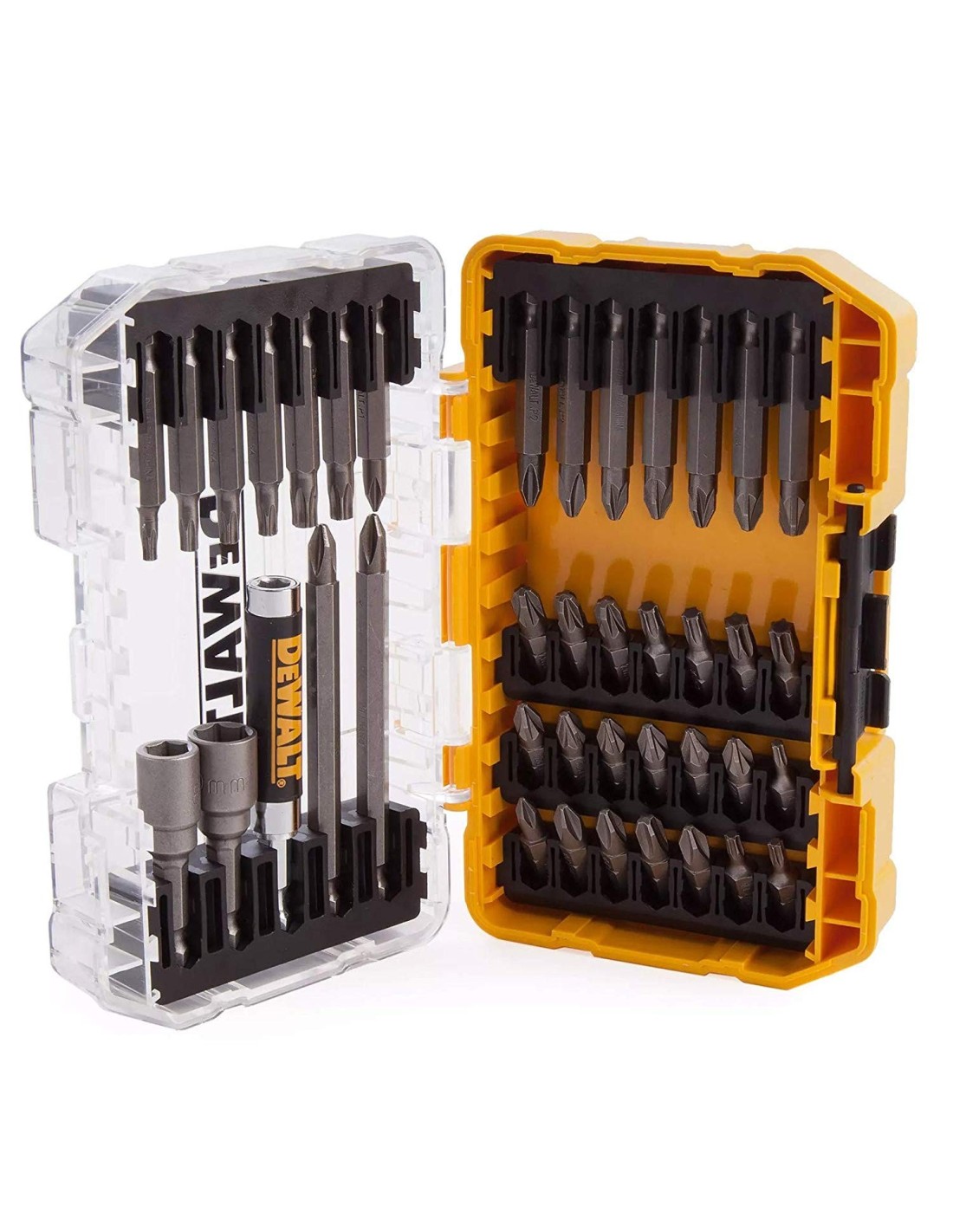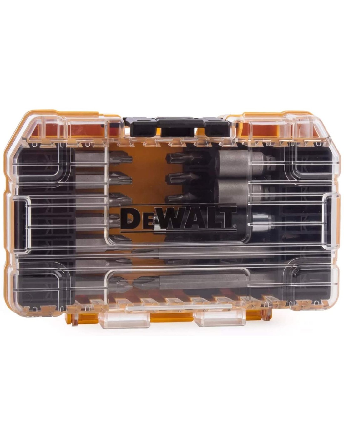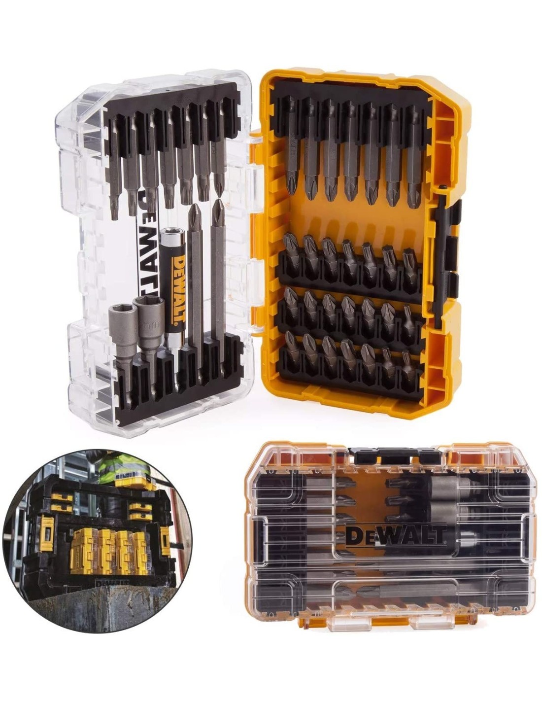 Tough Case pequeña con 40 piezas para atornillar. Puntas de atornillar de 25mm: Ph1, Ph2 x2, Ph3 x2, Pz2 x6, Pz3 x3, T10, T15 x2, T25 x2, T30 x2. 50mm: Ph1, Ph2 x2, Pz2 x4, Pz3, T15, T20, T25 x2, T30 x2. 85mm: Ph2 x2. Llave de vaso hexagonal: 8mm, 10mm. Guía telescópica magnética.