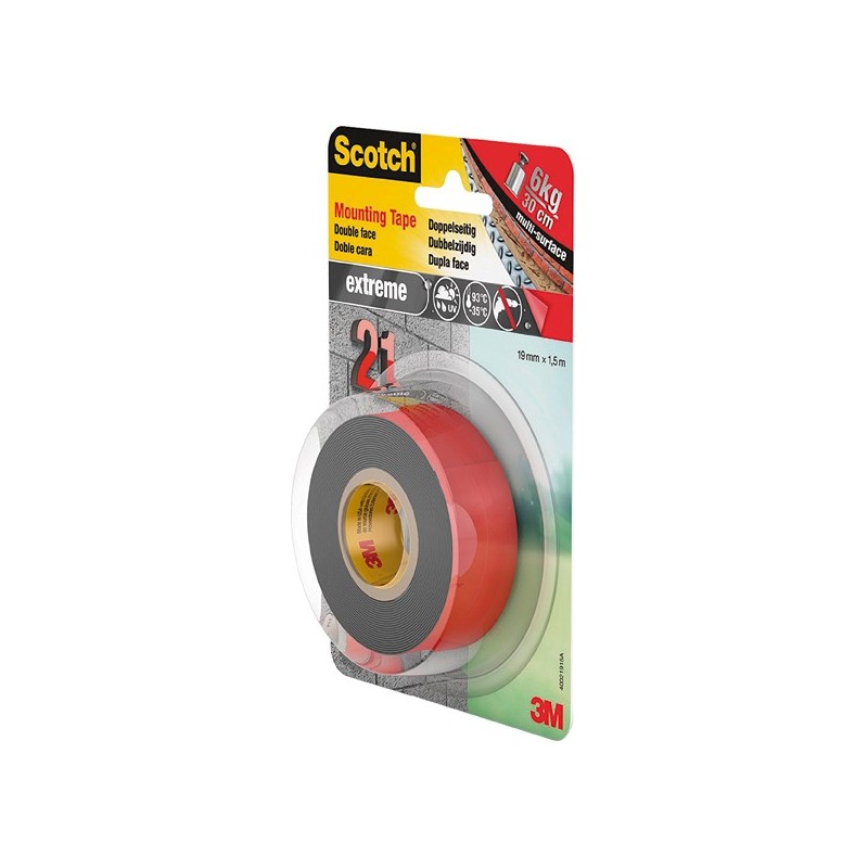 Extra fuerte para aplicación permanente. Adecuada para la mayoría de superficies de interior y exterior. Capacidad: 6 kg / 30 cm