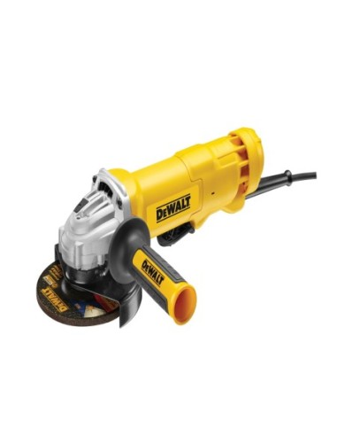 Mini-Amoladora 125mm con interruptor hombre-muerto, sistema de extracción de polvo, empuñadura lateral antivibración, escobillas de desconexión automática, tuerca anti bloqueo, botón de bloqueo del eje. 11.000 rpm, máx. diámetro de disco 125mm, rosca M14, peso 2,2Kg. EQUIPO ESTÁNDAR: Guarda protectora 125mm, tuerca interna y externa, llave, empuñadura lateral antivibración multi-posición