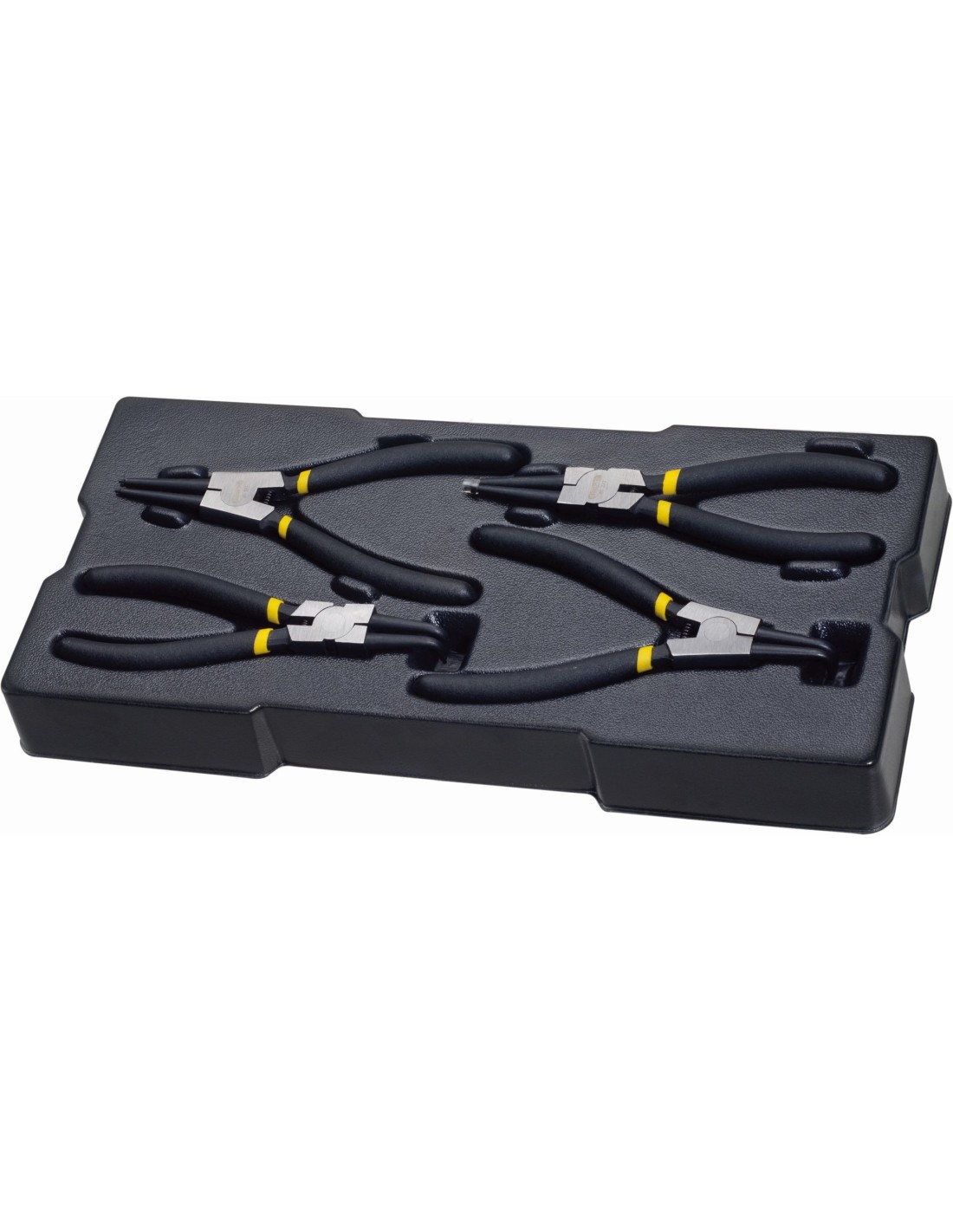 -Contenido 4 alicates para arandelas 180mm: interior y recto, exterior y recto, interior y curvo, exterior y curvo.