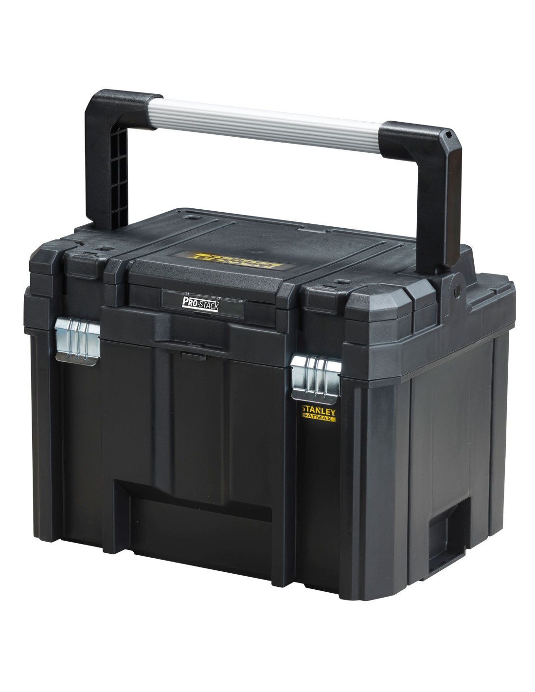 -- Cierres laterales que permiten la conexión para un transporte más fácil y un apilado seguro. - Bandeja extraíble para un acceso rápido a las herramientas más utilizadas. - Volumen extragrande para almacenar herramientas altas. - Asa y cierres para un uso intensivo. - Asa ancha incorporada para una portabilidad fácil y estable. - Cierres y bisagras metálicos, fuertes y resistentes.