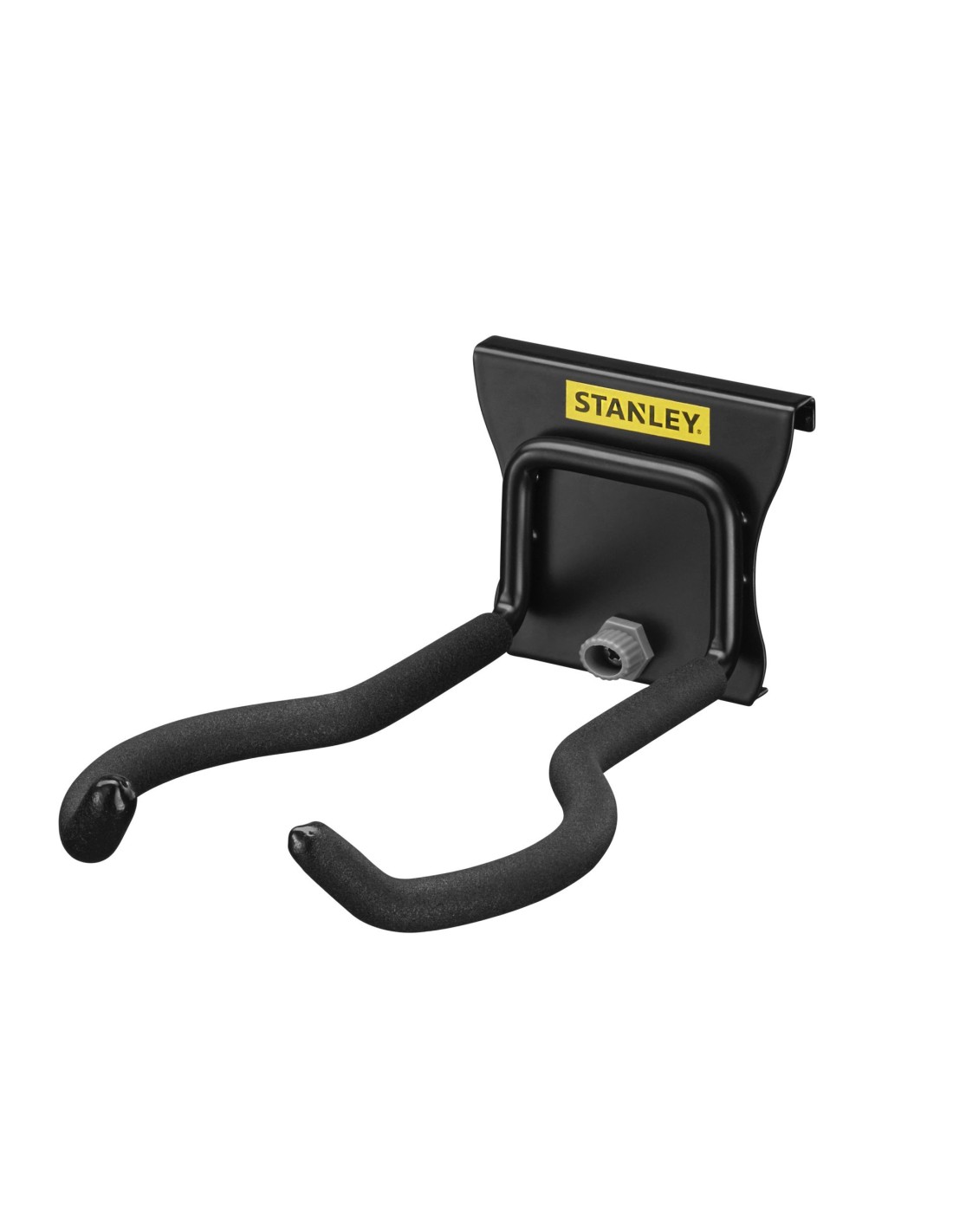 Se monta en el raíl de Stanley sin herramientas ni accesorios. El sistema de enganche HOOKTITE™ fija el gancho al raíl. Los ganchos tienen la forma adecuada para sostener herramientas eléctricas grandes, equipamiento de jardín e incluso motores de barco