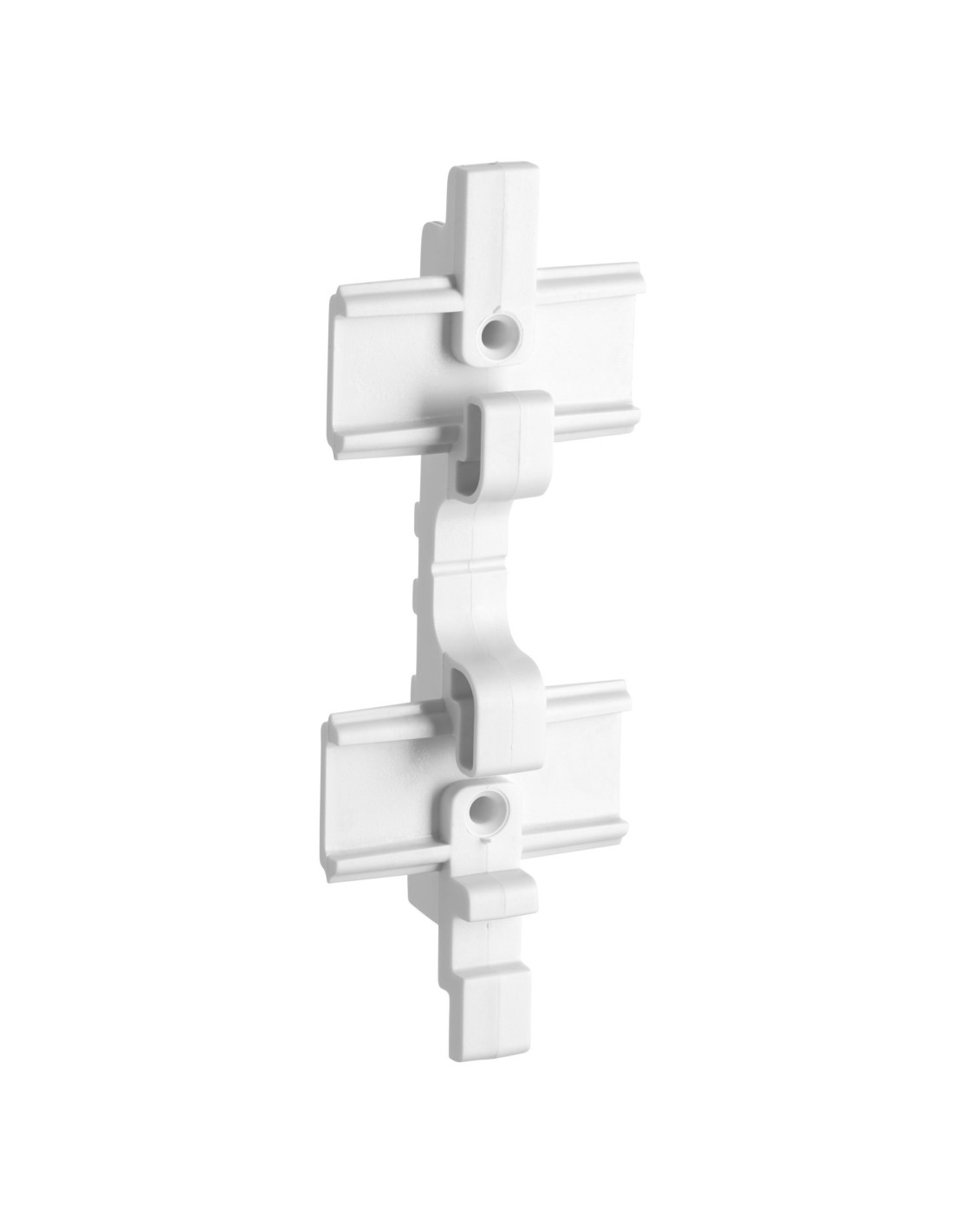 Combina a la perfección múltiples raíles, instalados de un extremo a otro. Ayuda a mantener los raíles alineados y nivelados. Incluye cuatro juntas que pueden conectar hasta 5 raíles. Añade fuerza a las juntas entre los raíles. Ayuda a crear una apariencia optimizada cuando se utilizan múltiples raíles. Incluye dos orificios para fijarlo con tornillos a la pared y lograr mayor resistencia. Fácil instalación; deslícelo en las ranuras de los raíles