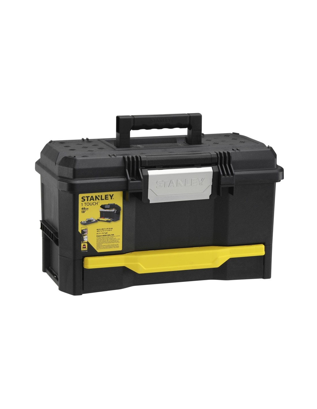Caja con apertura de una sola mano, bandeja interior de 2/3 extraible, cajón profundo. Empuñadura ergonómica, tapa con ranura en “V” y orificio para candado