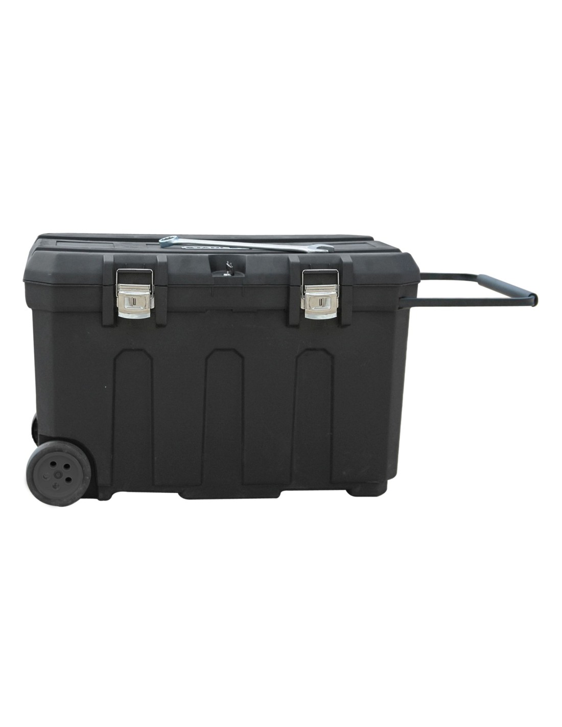 Capacidad: 190L. Cierres metálicos extra grandes y duraderos. Ruedas muy resistentes de 15,24 cm de grosor. Bandeja extraíble con 2 compartimentos cubiertos para el almacenaje de herramientas y accesorios.Gruesa asa telescópica para una sujeción confortable incluso con guantes. Incluye cerradura.