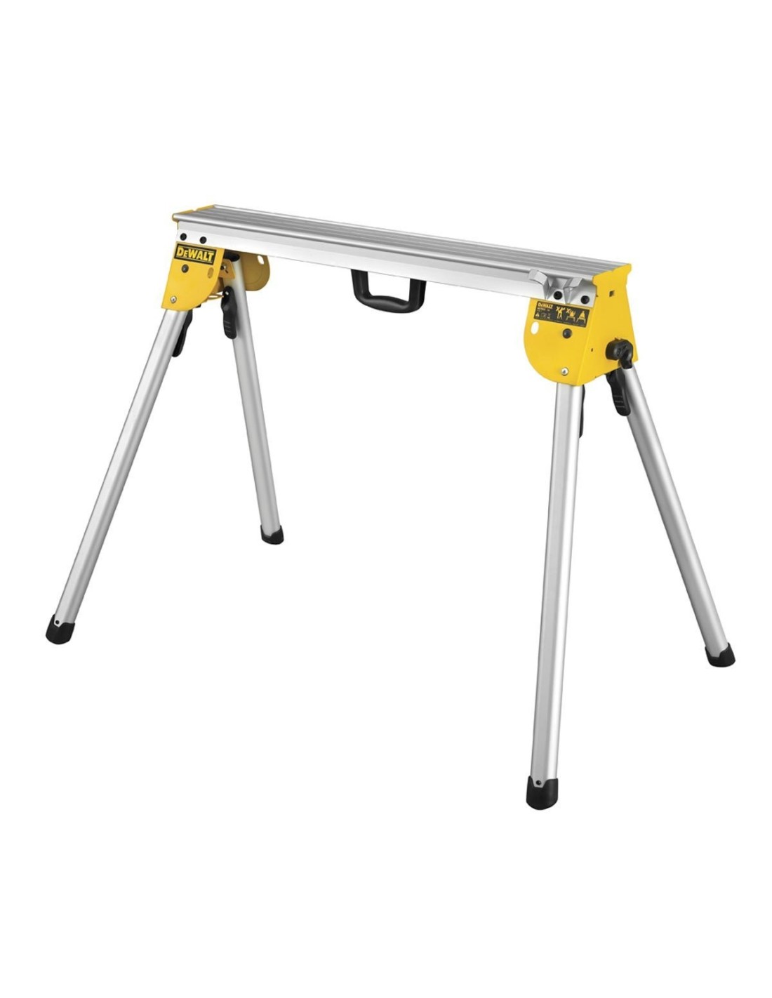 Banco de trabajo (caballete) de soporte universal. Se puede utilizar con sierras con el accesorio DE7025 Superficie de trabajo: 92cm Longitud y 13cm An-cho. 81cm Altura de trabajo de la superficie cuando está montado.Distancia patas cuando está montado 116,5cm Longitud y 72cm Ancho.