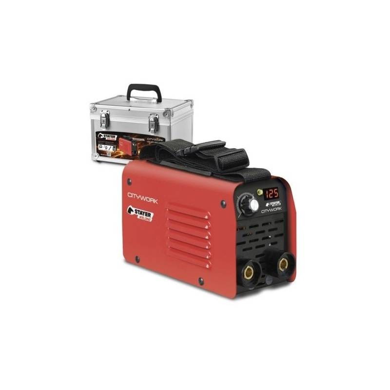 Tamaño reducido 20 x 12 x 9 cm. - Ligero 2 kg. - Potencia de 125 Amp - Ciclo de trabajo real del 100%. - Fáciles de usar: Especialmente ajustados para uso sencillo, perfectos para usuarios sin experiencia. Incluye Control inteligente STAYER WELDING: hot start (para un fácil arranque del arco), arc force (para mantener la continuidad del arco) y anti stick (para evitar que el electrodo se pegue). - Prestaciones incomparables en su nivel de precio: 125A al 100% con aire a 40ºC gracias a IGBTs de última generación con Eoff=0.37mJ, voltaje en vacío =66.5Vdc. - Nueva versión, con importantes mejoras en diseño, IGBTS, transformadores, filtrado y lógica para un 100% de factor de marcha