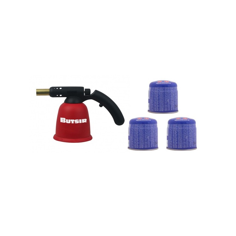 Soldador Gas Piezo+3 Cartuchos Butsir