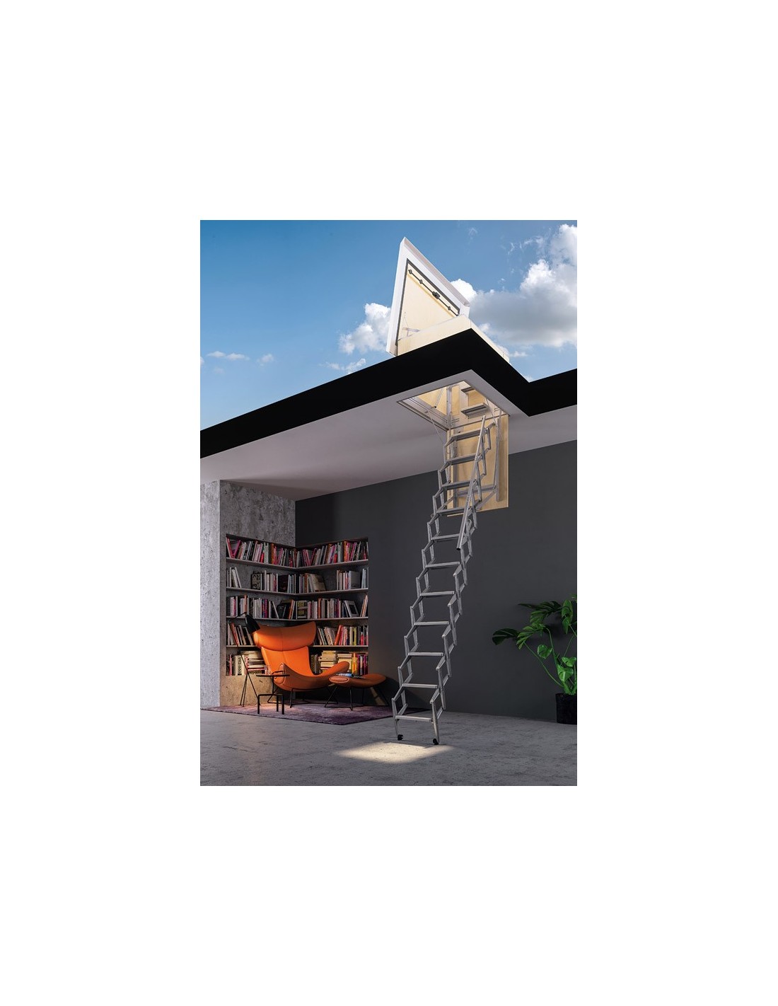 Escalera escamoteable de terraza tipo fuelle de acero zincado