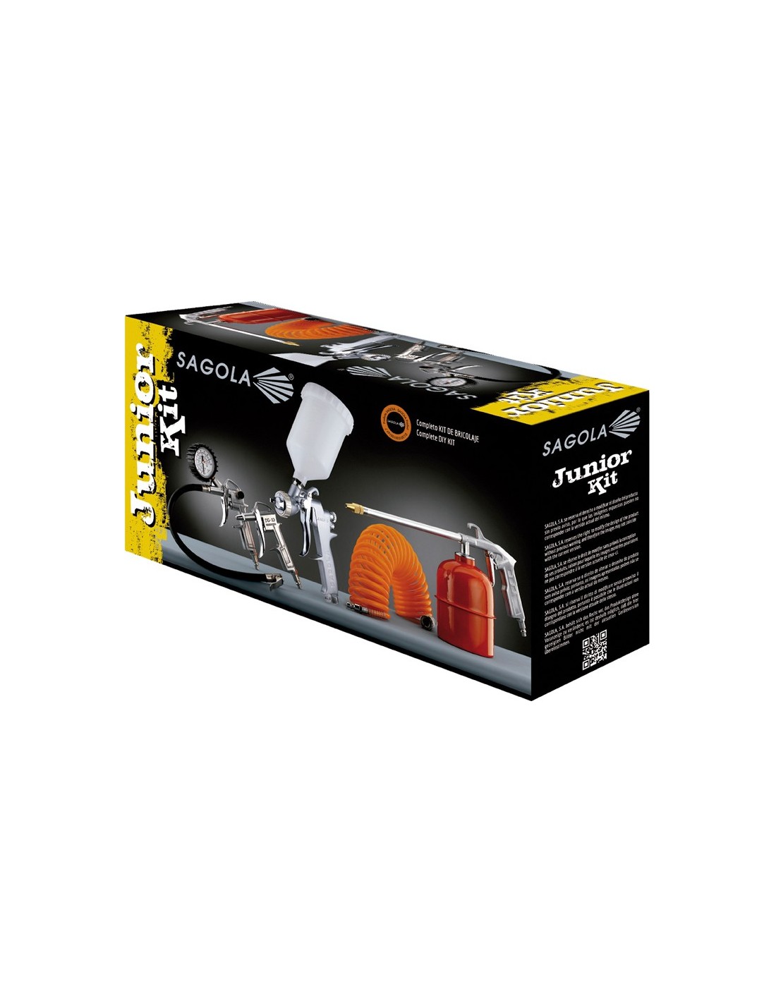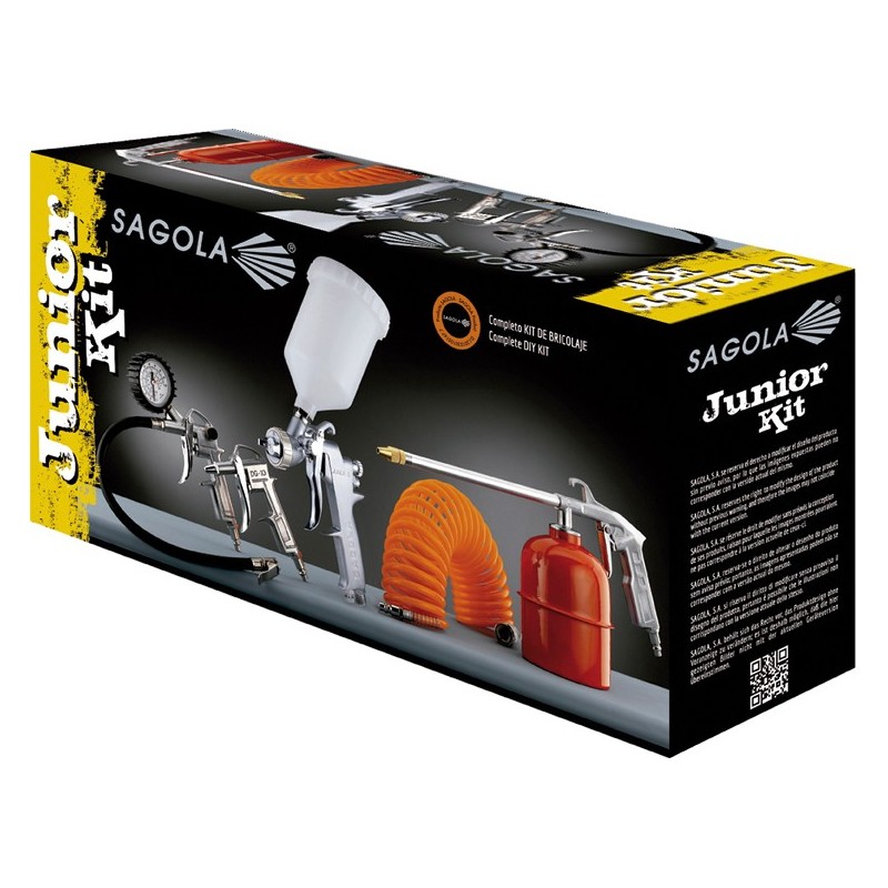 Kit de pintado para bricolaje. Incluye: Pistola de gravedad Junior G, sopladora, manguera de aire, petroleadora e inflador.