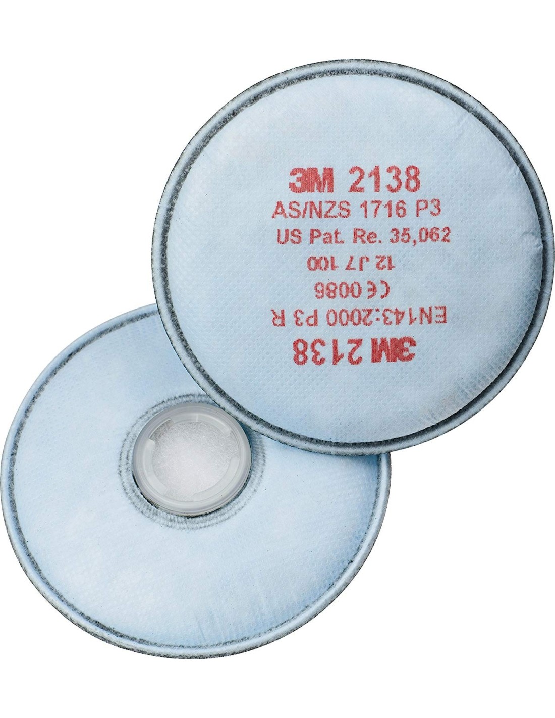 Los filtros 3M 2138 P3R ofrecen protección frente a partículas sólidas y líquidas no volátiles y frente a niveles bajos (inferiores al VLA) de gases ácidos y vapores orgánicos. Ofrecen protección frente a ozono hasta 10 x VLA. Pueden utilizarse con las medias máscaras de 3M S6000, S7000 y S7500 y con las máscaras completas 3M S6000 y 3M 7907. De uso habitual en la industria farmacéutica y alimentaria, construcción, agricultura, manejo de productos químicos en polvo, cerámicos, etc. Este artículo se vende en bolsas de 2 filtros.