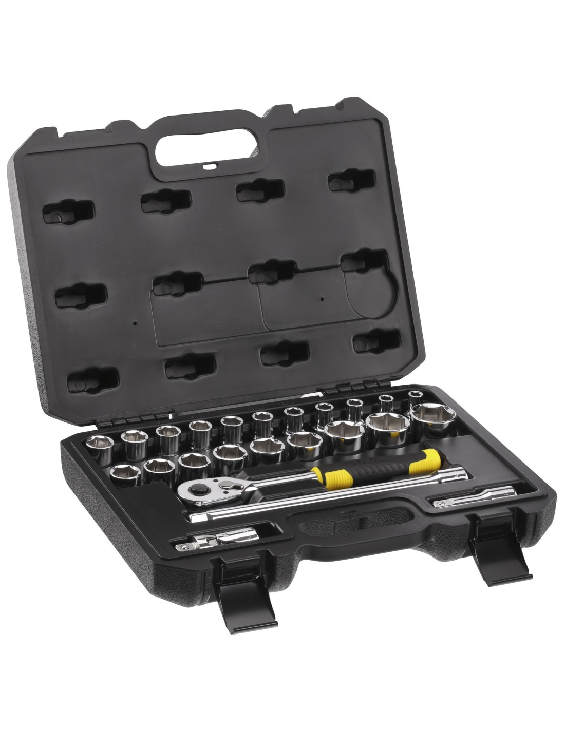 20x 1/2’ vasos (6 puntos) : 8 – 10 – 11 – 12 – 13 – 14 – 15 – 16 – 17 – 18 – 19 – 20 – 21 – 22 – 23 -24 -27 – 30 - 32 mm 2x extensiones 1/2' : 3” – 5”
