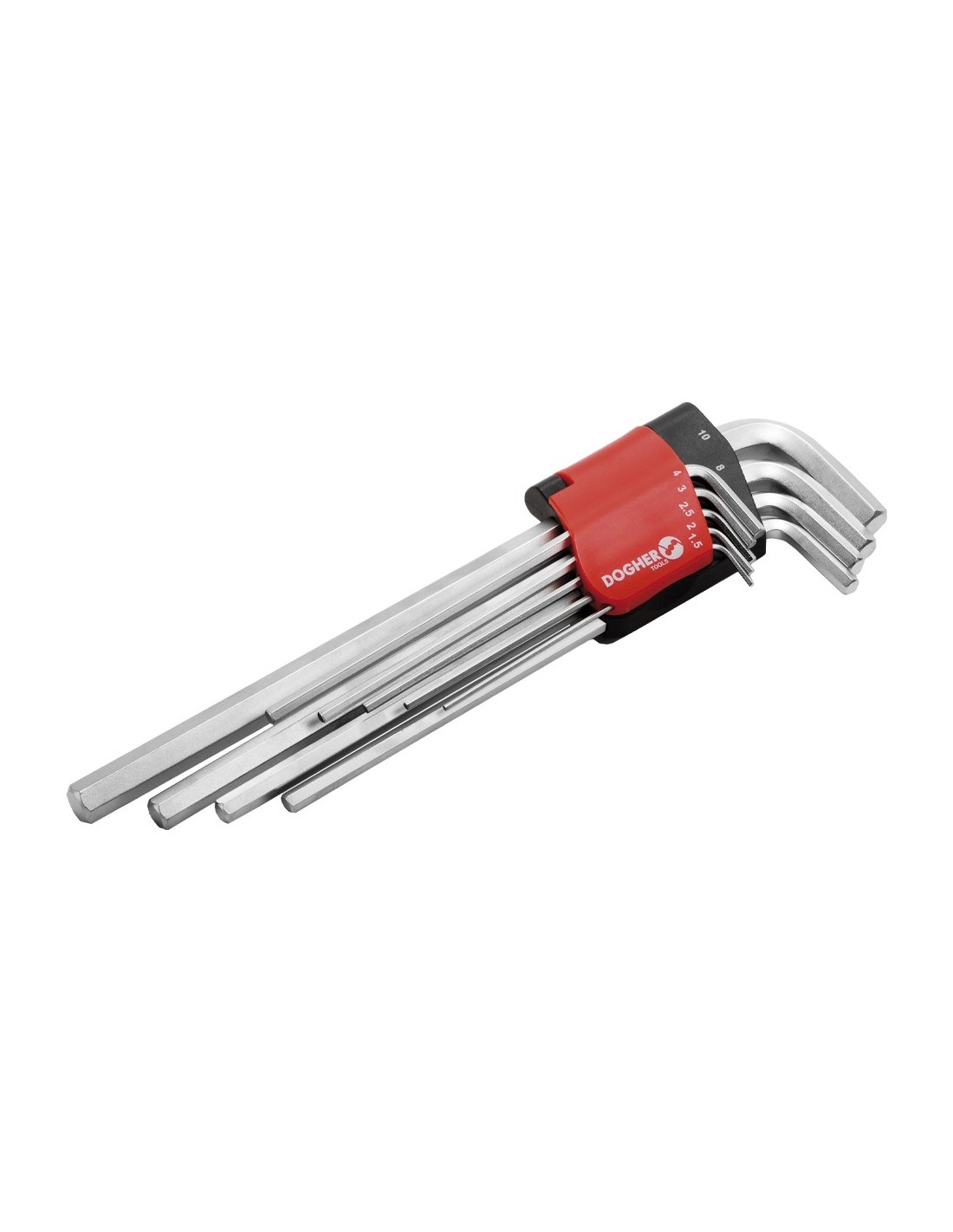 Herramientas de calidad fabricadas con una aleación de acero y Cromo Vanadio. • 1,5 - 2 - 2,5 - 3 - 4 - 5 - 6 - 8 - 10 mm. • Largo de las llaves XL: desde 90x14 mm. la de 1,5 mm. hasta 224x40 la de 10 mm.