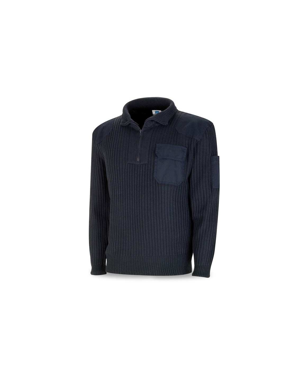 Jersey de género de punto acanalado, reforzado con tejido extra resistente en hombros y codos, del mismo color que la prenda. Disponible en color verde y azul marino.