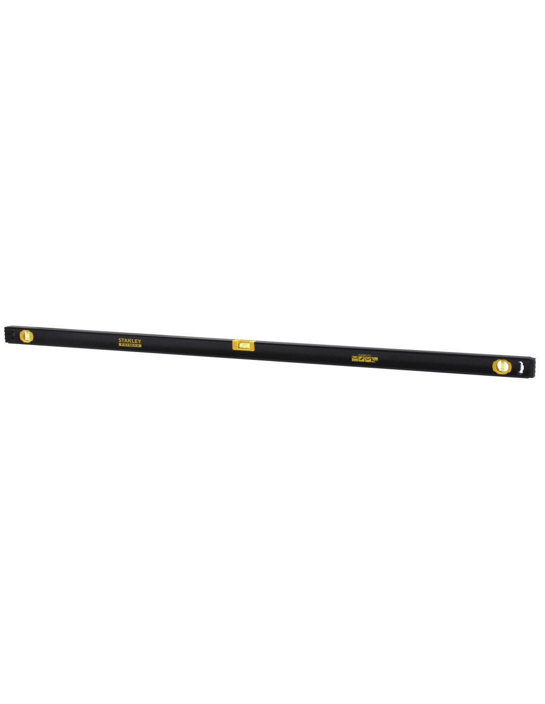 Nivel de burbujas de 150 cm, ideal para usar en espacios de trabajo limitados y adecuado para tareas de nivelación, como muros de yeso, alfombras, accesorios de ventanas y cocinas, decoración, plomería y tareas diarias de bricolaje. 2 viales UV de alta visibilidad, de fácil lectura y resistentes a los impactos (1 horizontal y 1 vertical) para eficiencia de trabajo y lectura rápida en todas las posiciones. Precisión del vial de 0,5 mm / m en la superficie primaria y 0,75 mm / m en la superficie secundaria. Superficie doblemente fresada para una máxima precisión de nivelación. El vial central con puente proporciona una superficie continua para marcar, así como un borde de corte preciso. Las dos tapas finales en goma absorben los golpes en caso de caídas accidentales. La superficie lisa pintada hace que el nivel sea fácil de limpiar. Agujero para colgar resistente para un fácil almacenamiento. Estructura del producto en aluminio sólido para garantizar máxima durabilidad