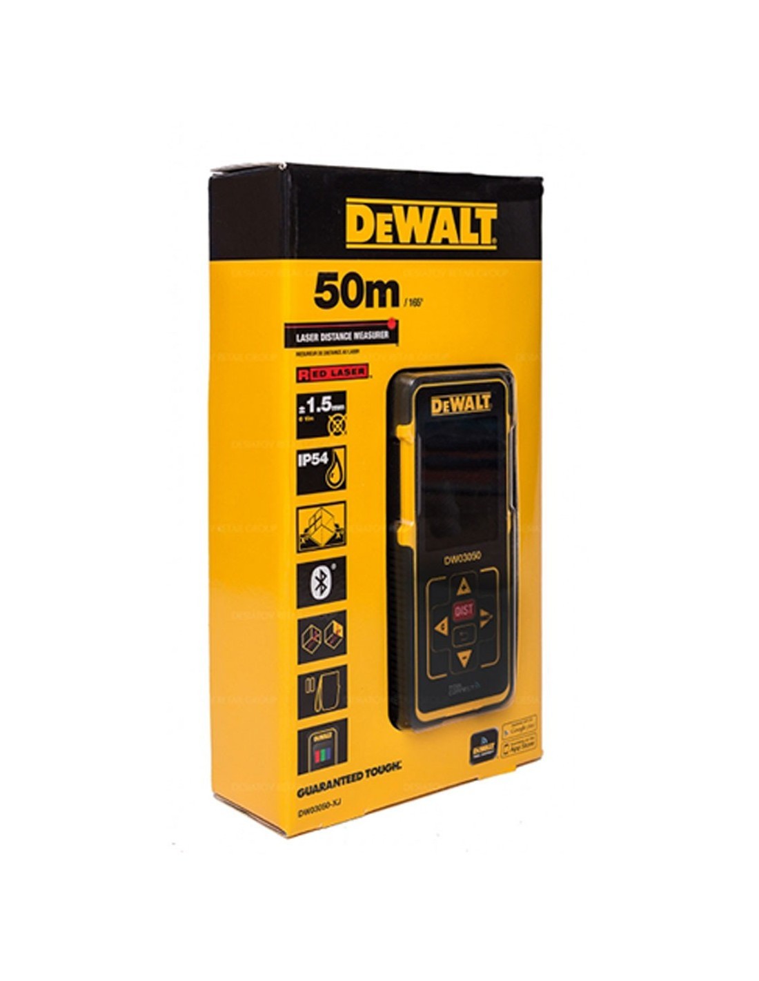 El medidor láser Dewalt DW03050 está fabricado para soportar condiciones extremas, caídas y golpes en el lugar de trabajo. Es el medidor más durable del mercado con IP65; funcionará después de una caída de 2 metros sobre hormigón. Incluye dos pilas alcalinas AAA y una funda para el cinturón