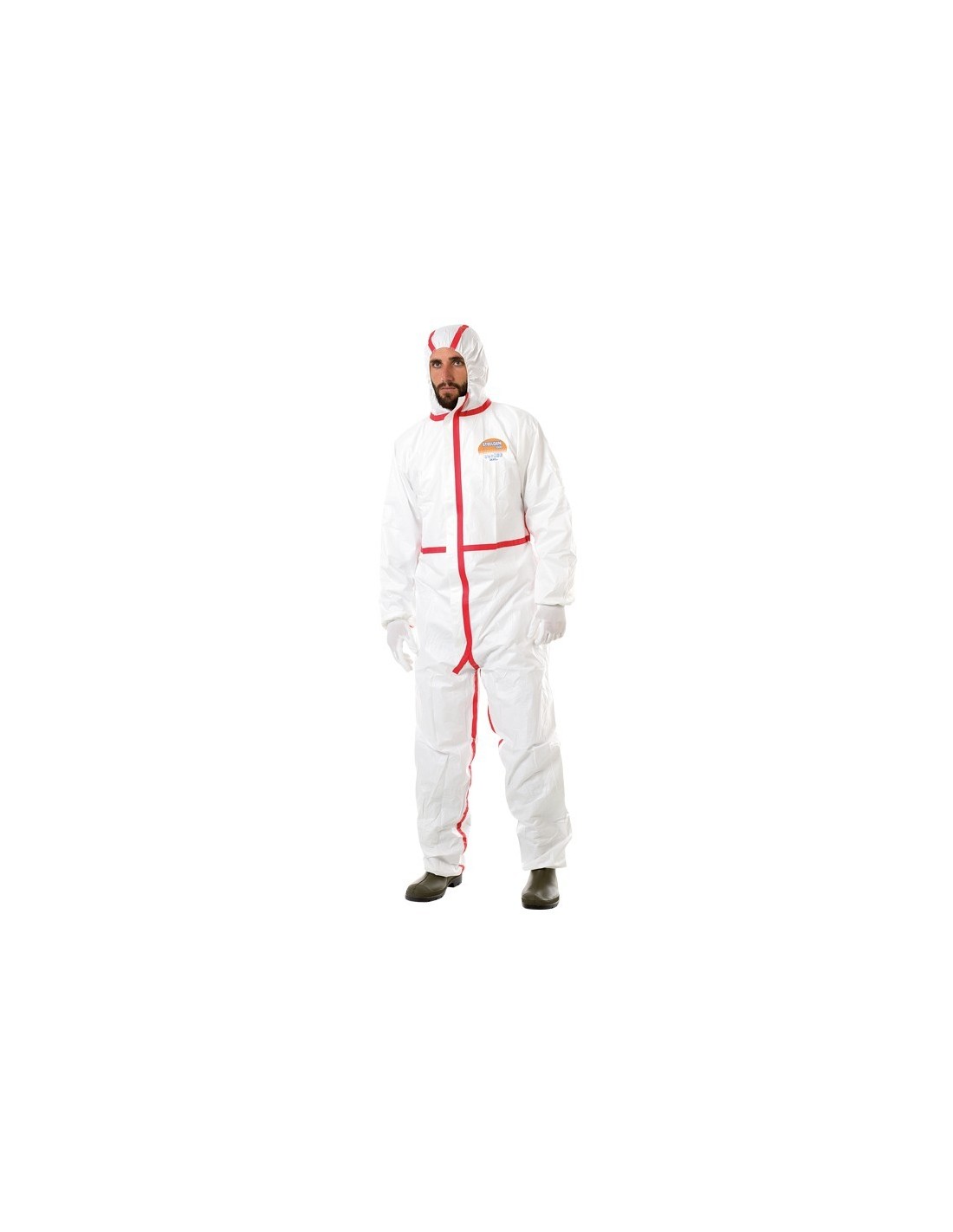 Buzo desechable STEELGEN 3000 con riesgo químico tipo 4, 5 y 6. Protección biológica (EN14126), antiestático (EN1149-5) y protección contra partículas radioactivas (EN1073-2). Descripción