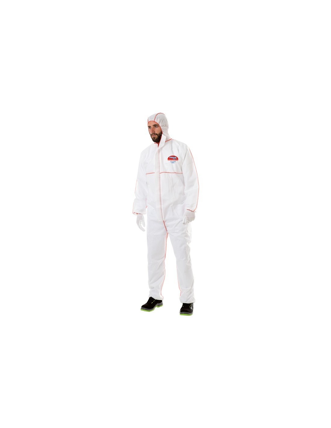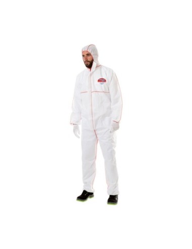 Buzo desechable STEELGEN 1000FR con riesgo químico tipo 5 y 6. Ignífugo. Antiestático (EN1149-5), protección limitada a la llama (EN14116) y protección contra partículas radioactivas (EN1073-2). Descripción