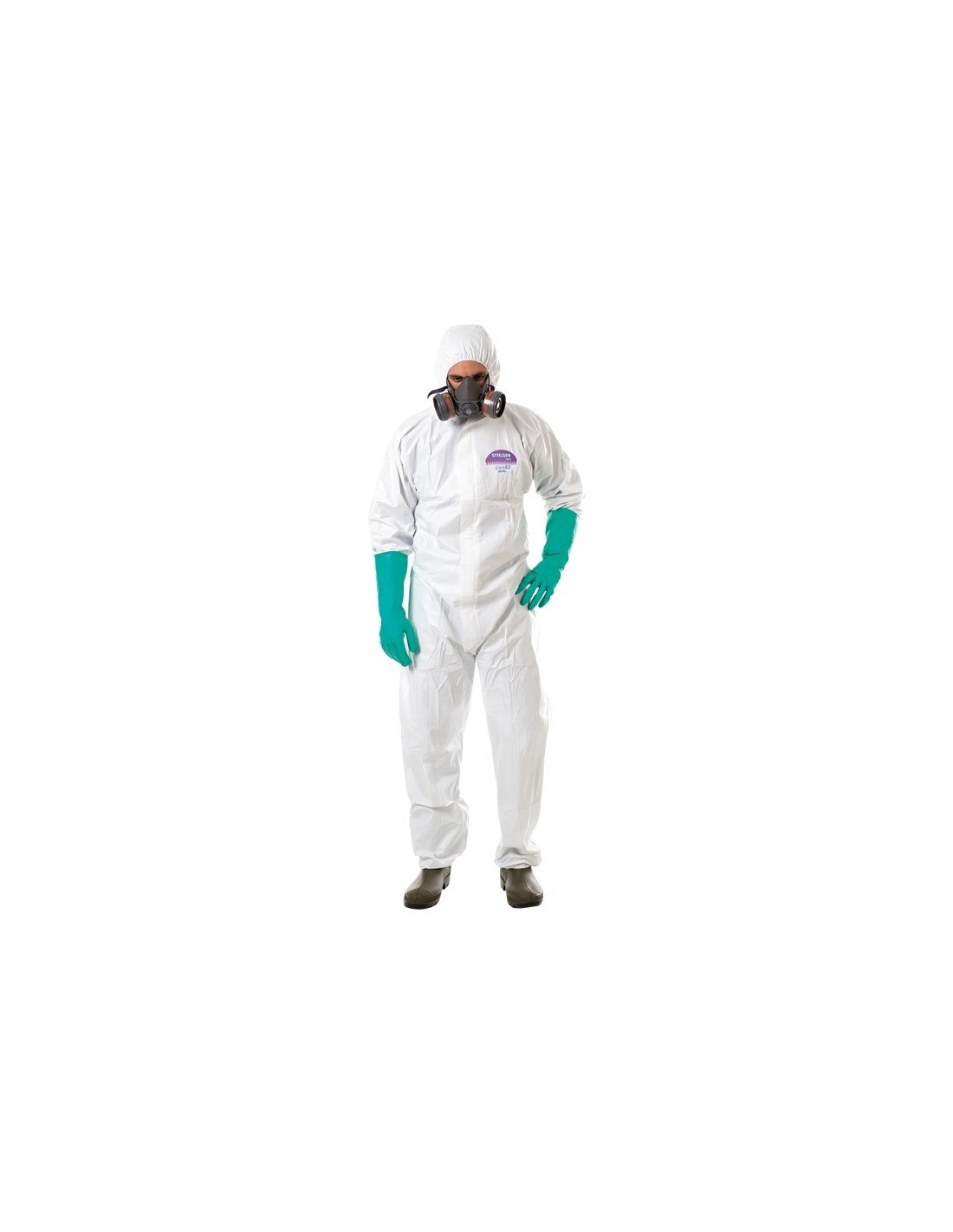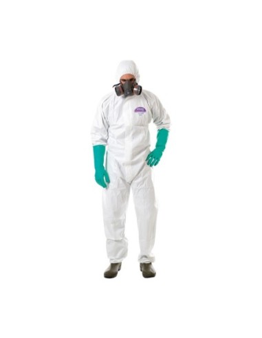 Buzo desechable STEELGEN 1000 con riesgo químico tipo 5 y 6. Protección biológica (EN14126), antiestático (EN1149-5) y protección contra partículas radioactivas (EN1073-2). Descripción