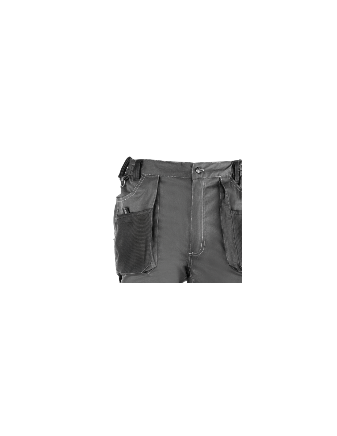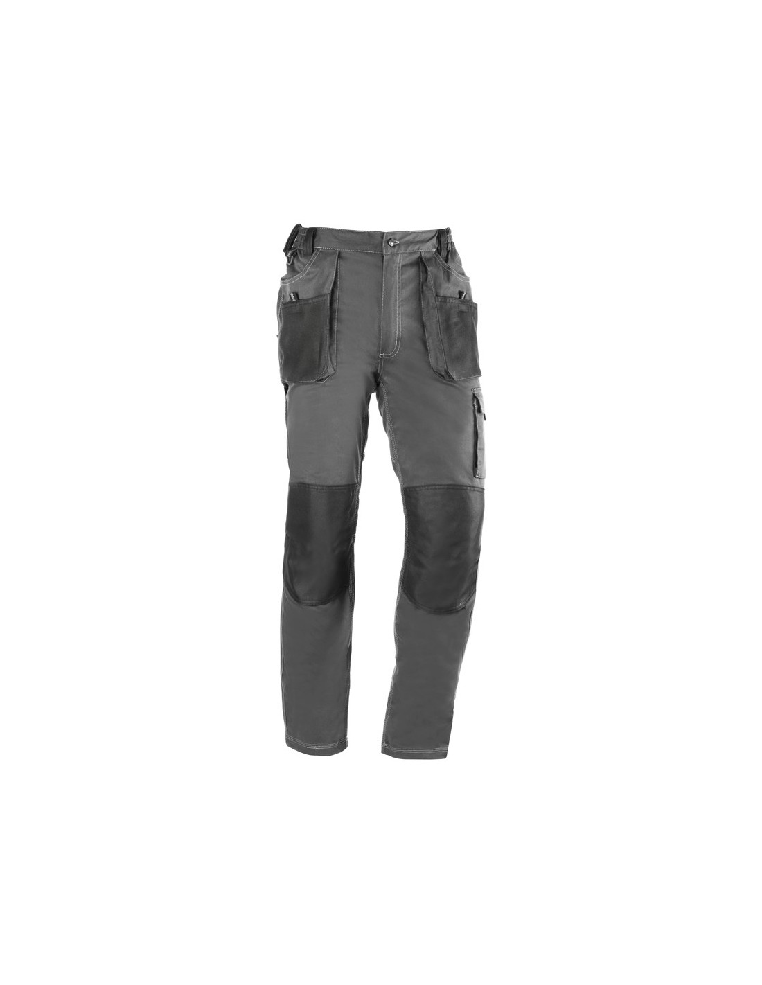 Pantalón multibolsillos flexible con triple costura, con elástico en la cintura, bolsillos frontales y traseros con refuerzo y cierre velcro, apertura para rodilleras, cierre de cremallera y botón, refuerzo extra en la parte trasera (zona de mayor desgaste).