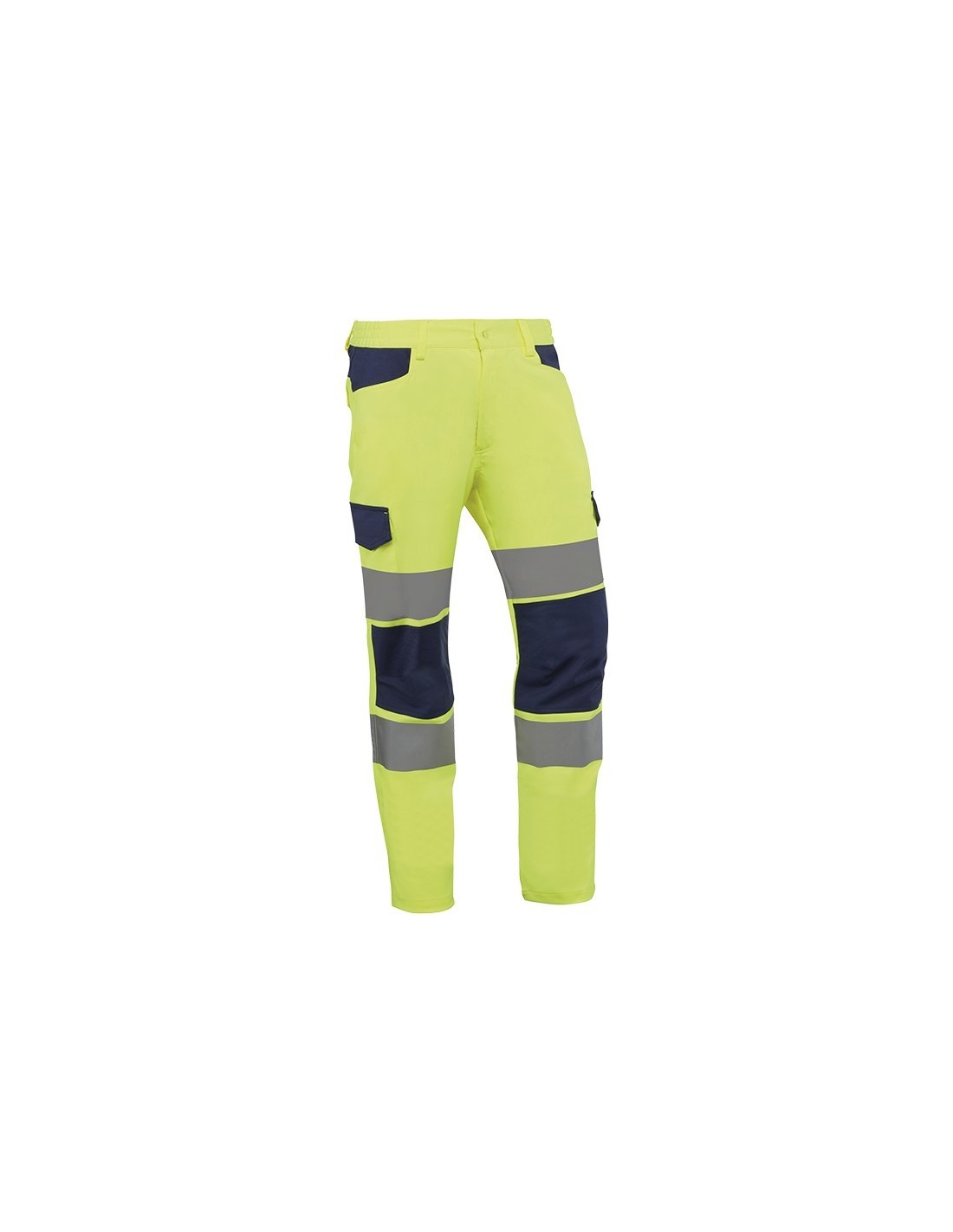 - Pantalón multibolsillos bicolor de alta visibilidad con bandas reflectantes.
