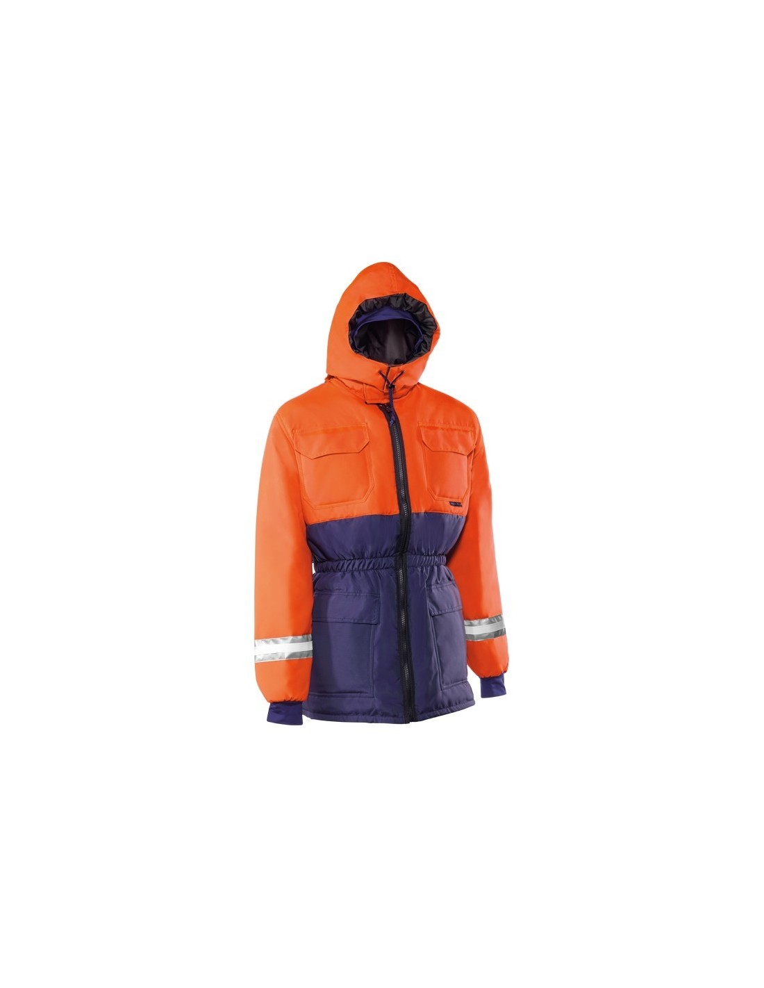 - Cierre frontal de cremallera y cuello de cierre velcro. Capucha desmontable con velcro. Cinta elástica en su interior para mayor ajuste de la cara, evita la entrada de frio, en el exterior cordón ajustable. Cuatro bolsillos frontales con cierre de tapeta, los de la parte inferior con acceso al bolsillo por la parte lateral. Cintura con tira elástica para mayor ajuste de la prenda. Tira de tejido reflectante de 3M® Scotchlite™ en la manga, encima una cinta fotoluminiscente para mayor visibilidad. Camiseta interior de regalo.
