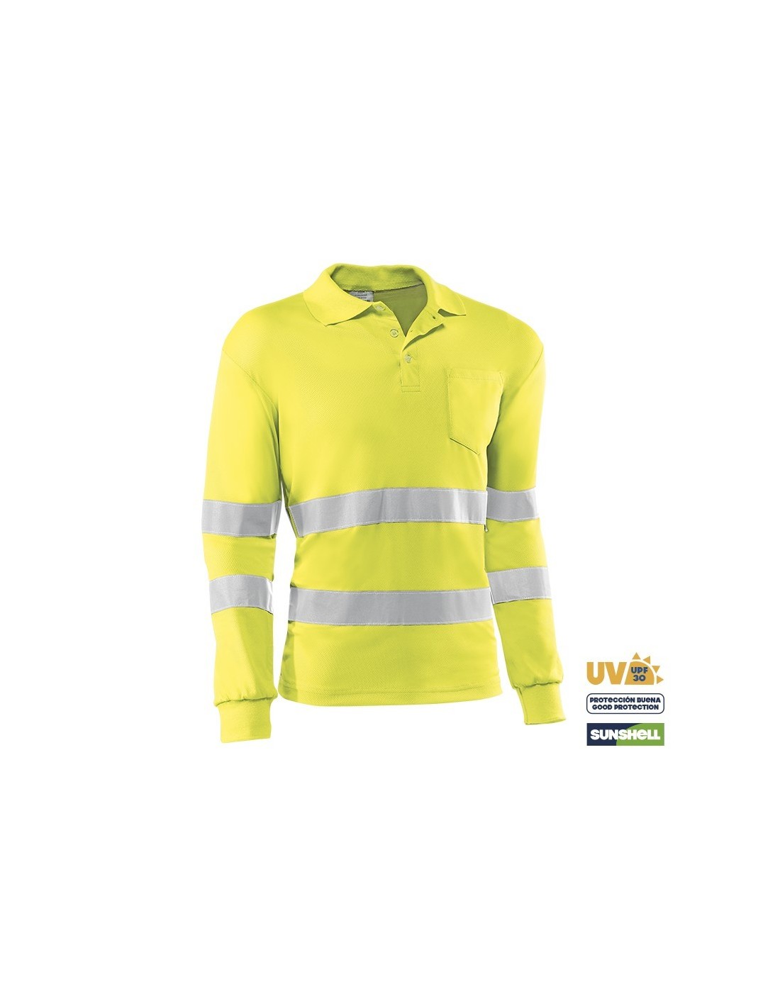 Polo transpirable de manga larga de alta visibilidad.. Descripción
