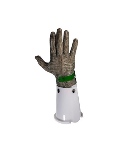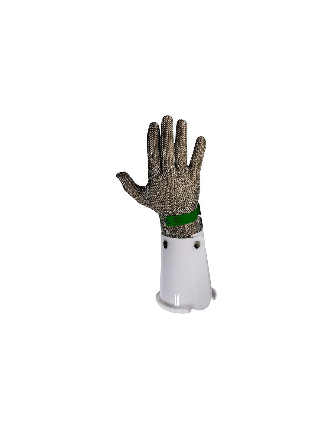 Guante de malla metálica de acero inoxidable con manguito de policarbonato.. Características