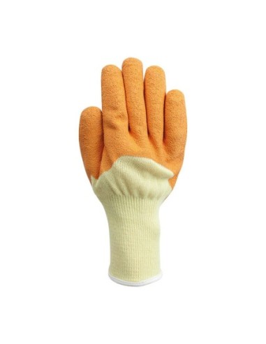 Guante sin costuras de poliéster con recubrimiento de látex rugoso hasta medio dorso con protección en palma y en la punta de los dedos de fibra antipinchazos. Características