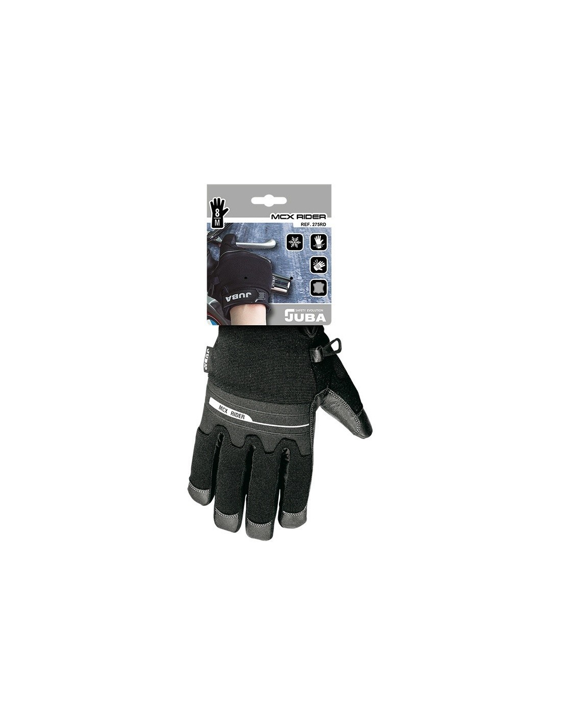 Guante de piel cabra en palma con refuerzos y dorso de elastano, forrado interior. Características