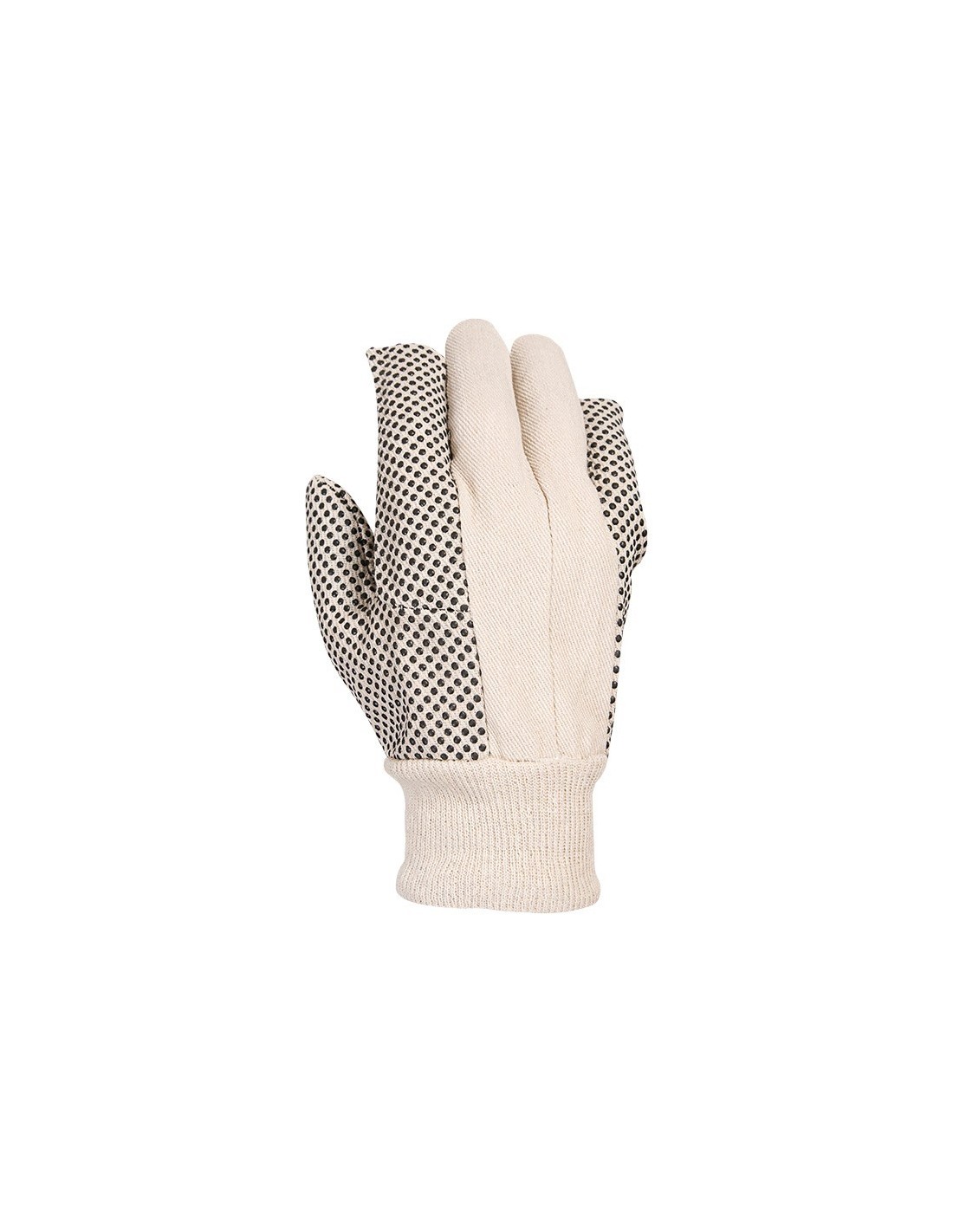 Guante de algodón canvas con puntos de PVC en palma y dorso. Características