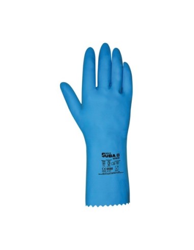 Guante sin soporte de látex natural flocado ligero en formato industrial.. Características