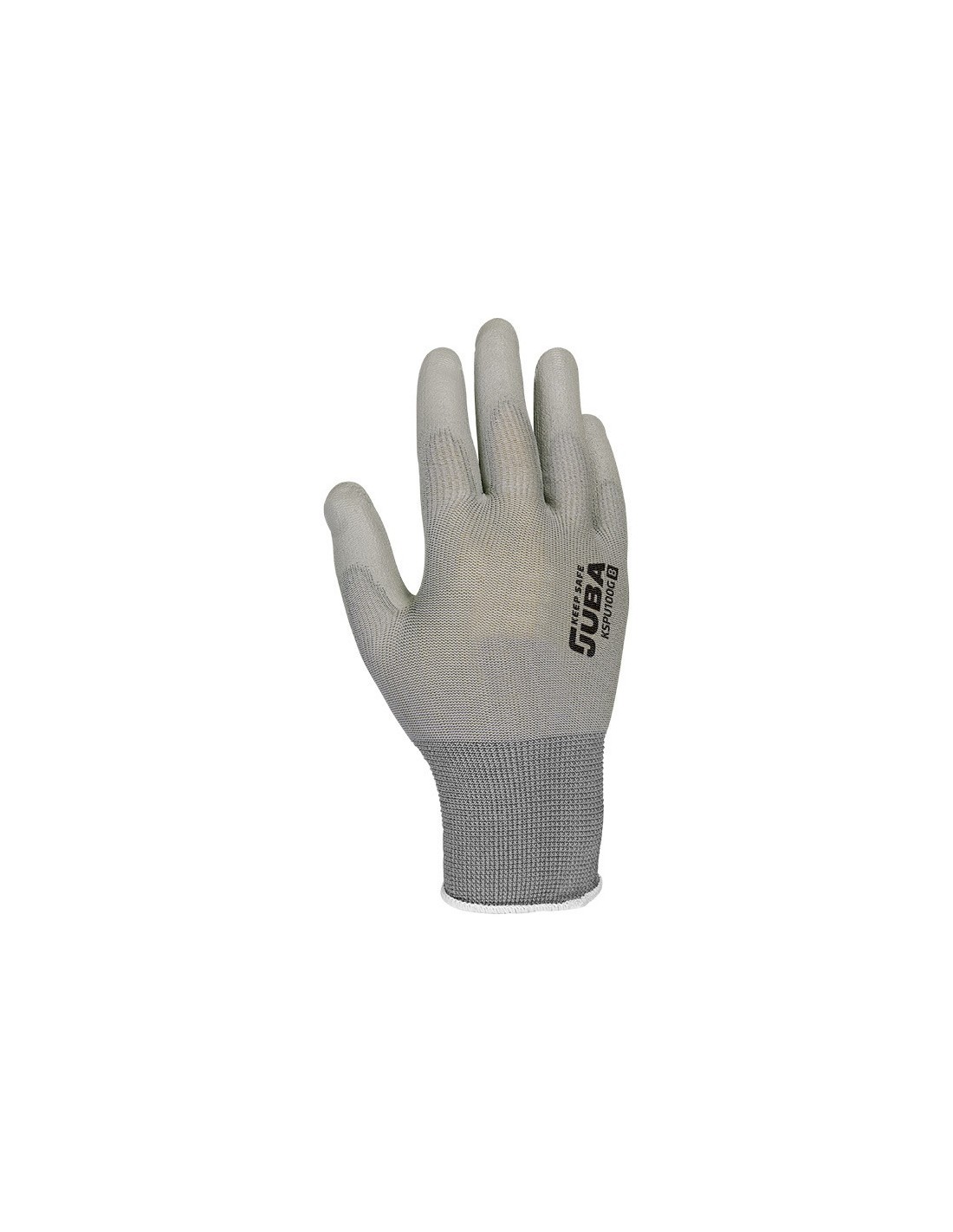 Guante sin costuras de poliéster gris recubierto de poliuretano en la palma.. Características