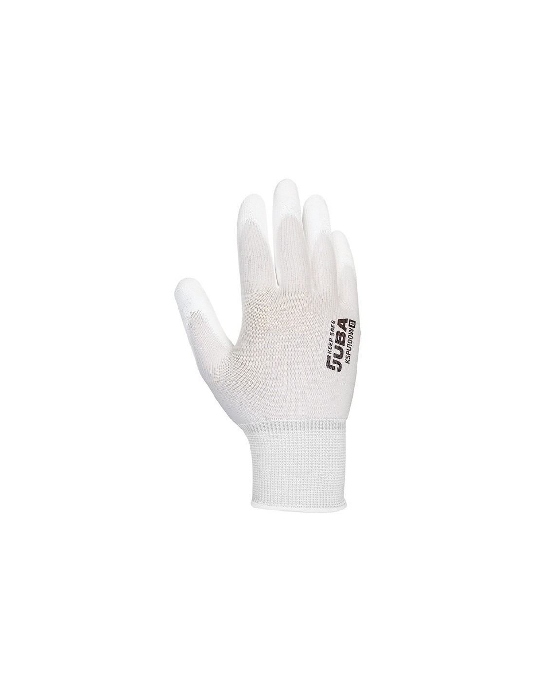 Guante sin costuras de poliéster blanco recubierto de poliuretano en la palma.. Características