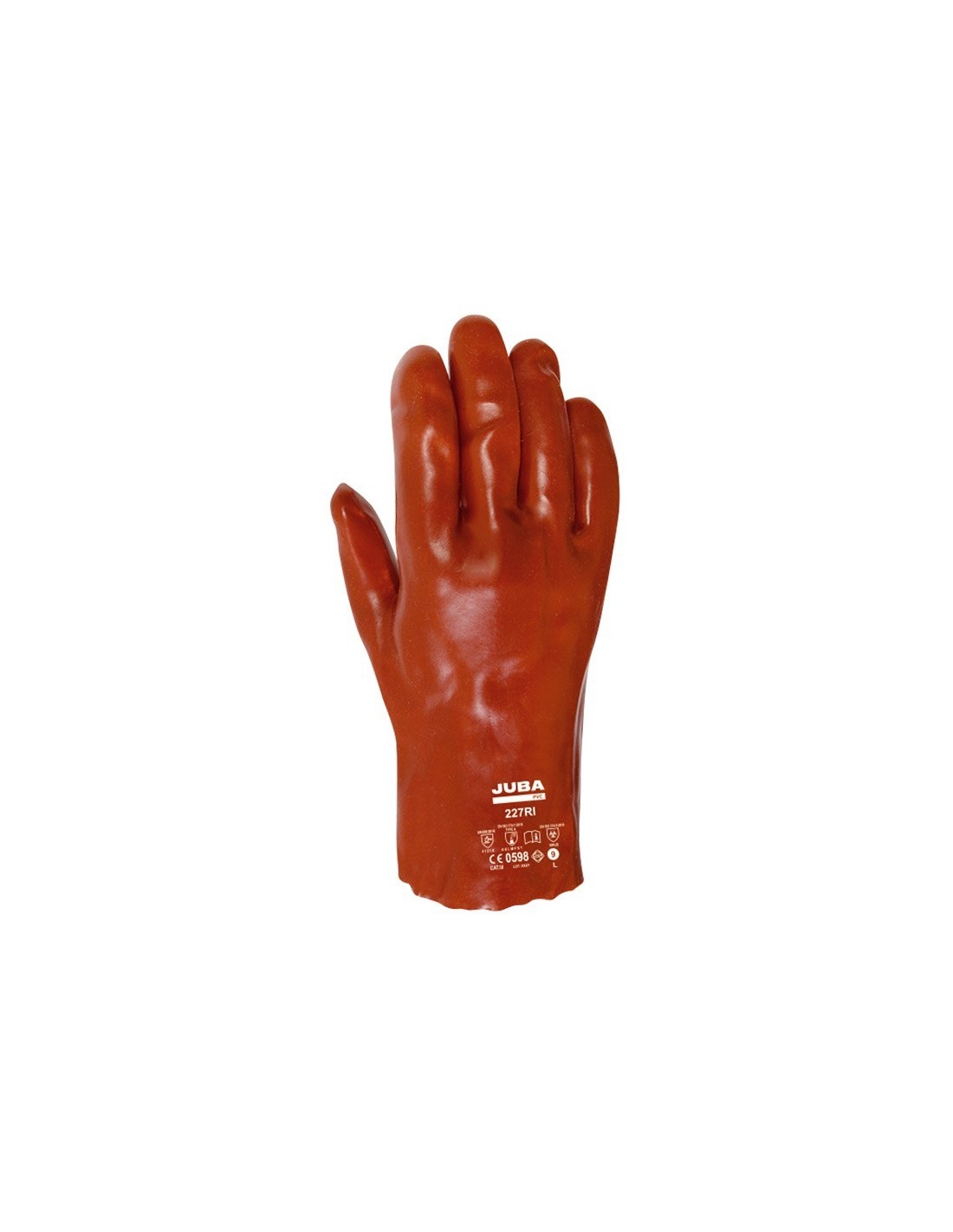 Guante de PVC liso de una capa con soporte de algodón, largo de 27 cm.. Características