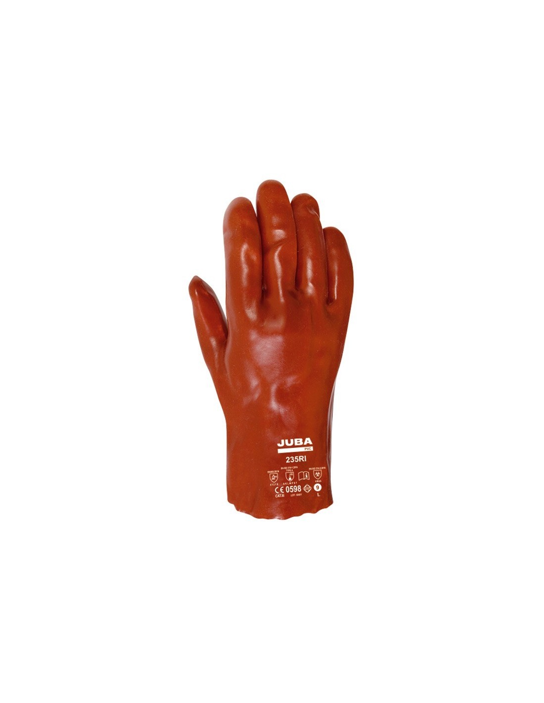 Guante de PVC liso de una capa con soporte de algodón, largo de 35 cm.. Características